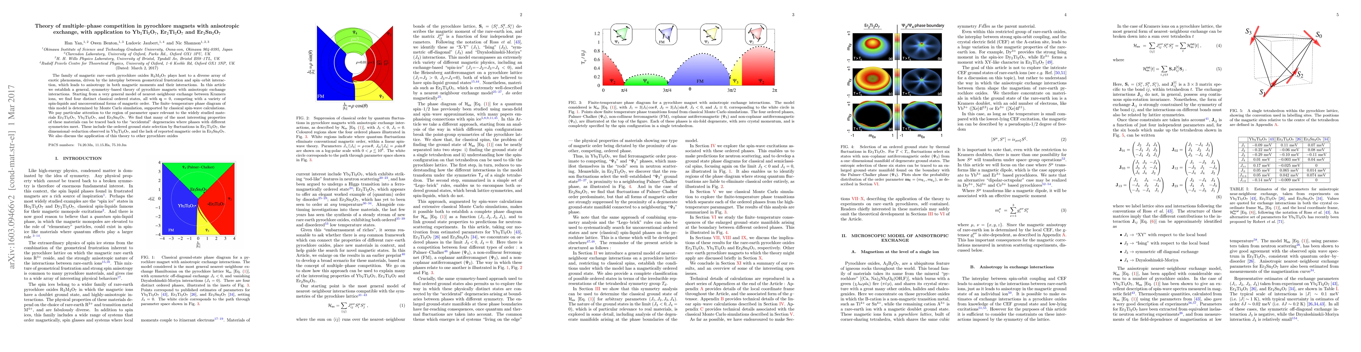 This paper develops a symmetry-based theory for pyrochlore magnets with anisotropic exchange, identifying four distinct classical ordered states competing with various spin-liquids. The theory is applied to Yb2Ti2O7, Er2Ti2O7, and Er2Sn2O7, revealing how degeneracies in these materials lead to unique magnetic behaviors such as ground state selection and dimensional reduction.