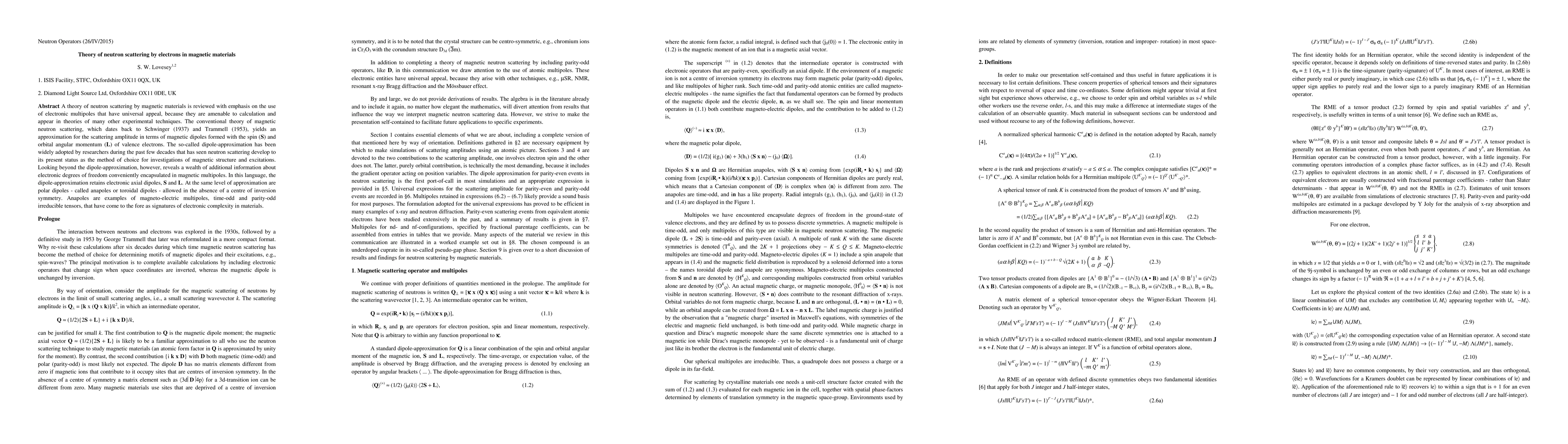 A theory of neutron scattering in magnetic materials revisits traditional dipole-approximation methods, suggesting a broader understanding through the use of electronic multipoles, which encapsulate additional information about material complexity.