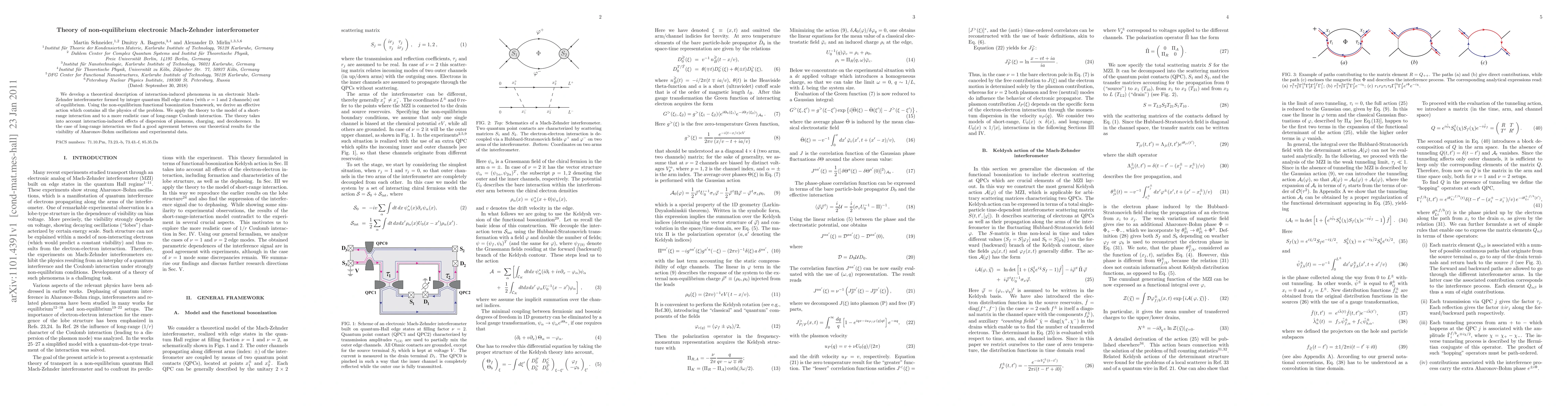 This paper develops a theoretical framework for non-equilibrium electronic Mach-Zehnder interferometers using integer quantum Hall edge states, focusing on interaction-induced phenomena. The study applies non-equilibrium functional bosonization to derive an effective action, analyzing both short-range and long-range Coulomb interactions, and finds good agreement between theoretical predictions and experimental data on Aharonov-Bohm oscillation visibility.