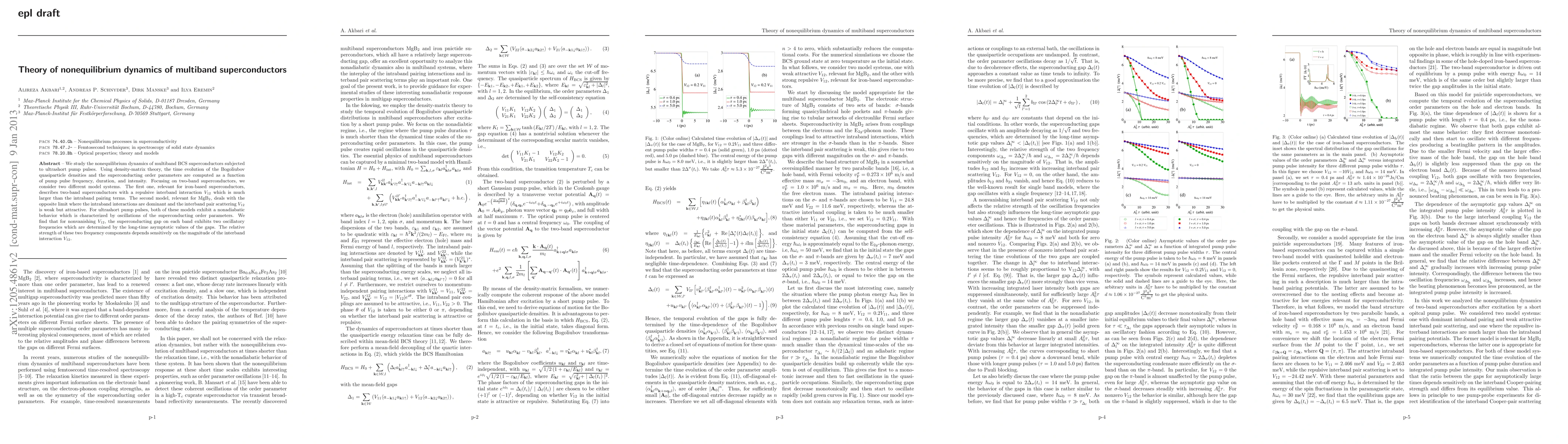 We study the nonequilibrium dynamics of multiband BCS superconductors subjected to ultrashort pump pulses. Using density-matrix theory, the time evolution of the Bogoliubov quasiparticle densities and the superconducting order parameters are computed as a function of pump pulse frequency, duration, and intensity. Focusing on two-band superconductors, we consider two different model systems. The first one, relevant for iron-based superconductors, describes two-band superconductors with a repulsive interband interaction $V_{12}$ which is much larger than the intraband pairing terms. The second model, relevant for MgB$_2$, deals with the opposite limit where the intraband interactions are dominant and the interband pair scattering $V_{12}$ is weak but attractive. For ultrashort pump pulses, both of these models exhibit a nonadiabatic behavior which is characterized by oscillations of the superconducting order parameters. We find that for nonvanishing $V_{12}$, the superconducting gap on each band exhibits two oscillatory frequencies which are determined by the long-time asymptotic values of the gaps. The relative strength of these two frequency components depends sensitively on the magnitude of the interband interaction $V_{12}$.