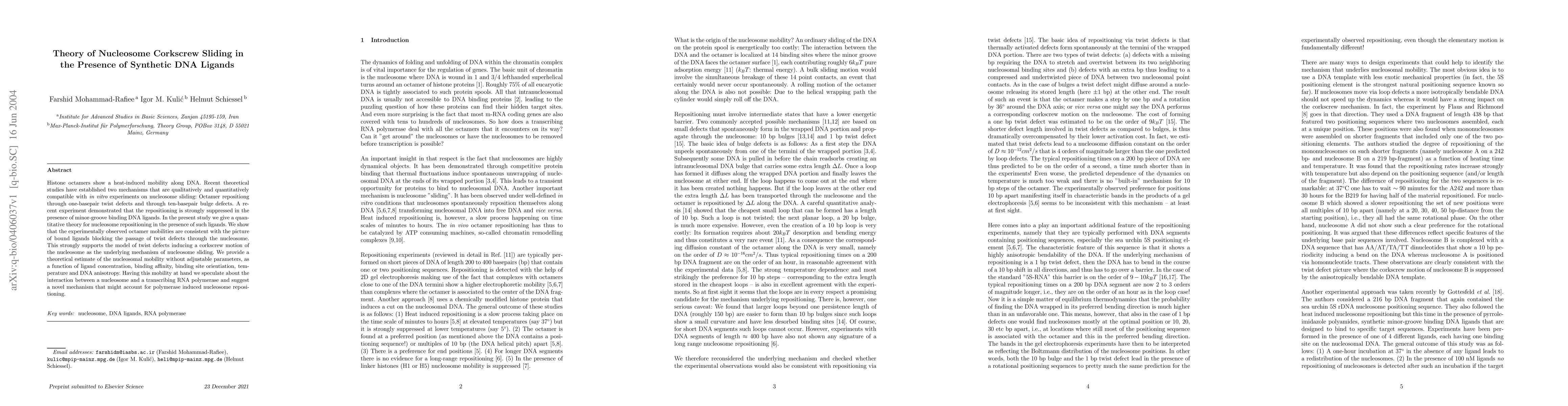 This study quantitatively explains nucleosome sliding mechanisms in the presence of synthetic DNA ligands, showing that ligands block twist defects, supporting the corkscrew motion model. It also provides a theoretical estimate of nucleosomal mobility dependent on various factors and speculates on nucleosome-polymerase interactions.