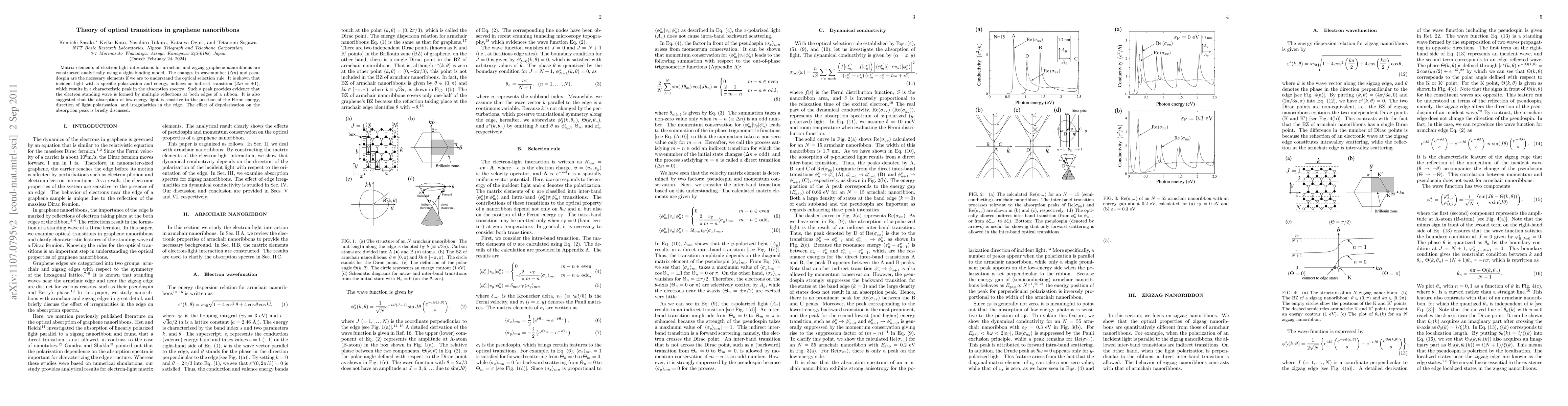 Matrix elements of electron-light interactions for armchair and zigzag graphene nanoribbons are constructed analytically using a tight-binding model. The changes in wavenumber ($\Delta n$) and pseudospin are the necessary elements if we are to understand the optical selection rule. It is shown that an incident light with a specific polarization and energy, induces an indirect transition ($\Delta n=\pm1$), which results in a characteristic peak in absorption spectra. Such a peak provides evidence that the electron standing wave is formed by multiple reflections at both edges of a ribbon. It is also suggested that the absorption of low-energy light is sensitive to the position of the Fermi energy, direction of light polarization, and irregularities in the edge. The effect of depolarization on the absorption peak is briefly discussed.