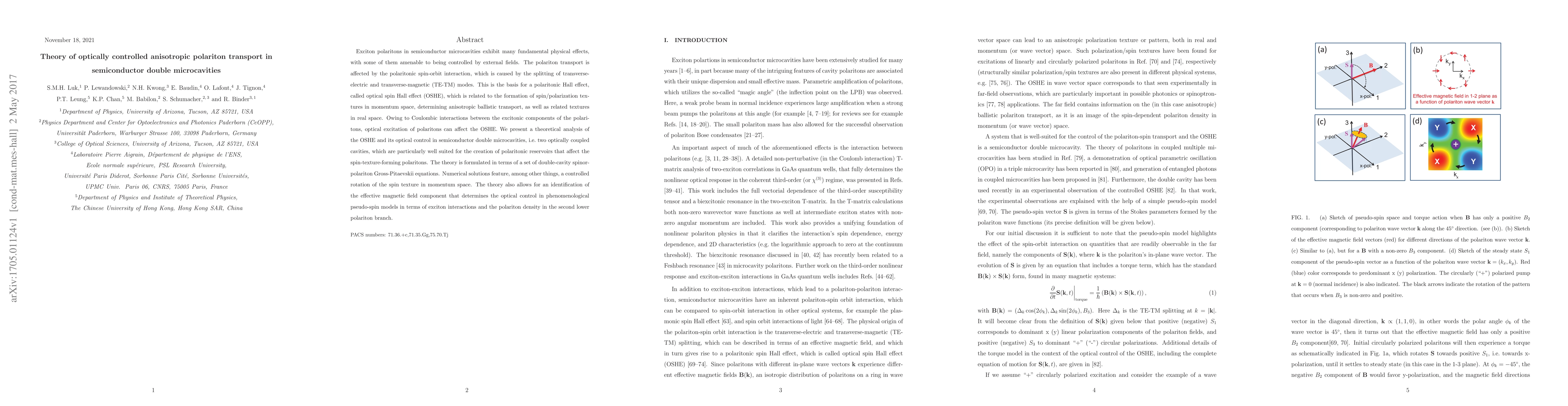 This paper presents a theoretical framework for optically controlling anisotropic polariton transport in semiconductor double microcavities, focusing on the optical spin Hall effect (OSHE). The study formulates a set of double-cavity spinor-polariton Gross-Pitaevskii equations to analyze the OSHE and its optical control, revealing a controlled rotation of spin textures in momentum space and identifying effective magnetic field components.
