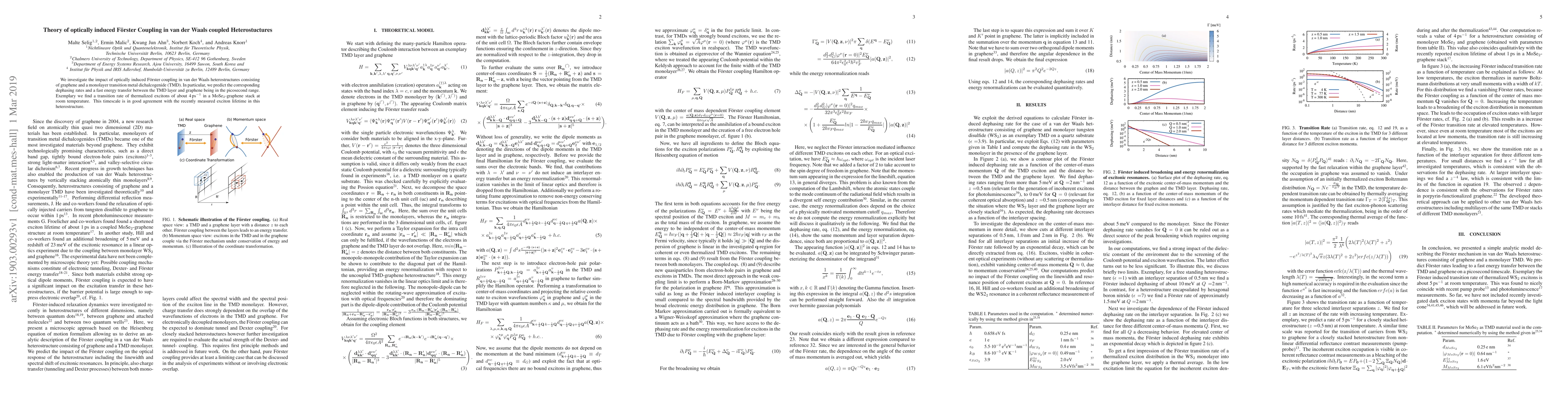 This paper investigates optically induced Förster coupling in van der Waals heterostructures combining graphene and monolayer TMD, predicting picosecond-range dephasing rates and rapid energy transfer. A transition rate of thermalized excitons of about 4 ps$^{-1}$ is found in a MoSe$_2$-graphene stack at room temperature, aligning well with recent experimental measurements.