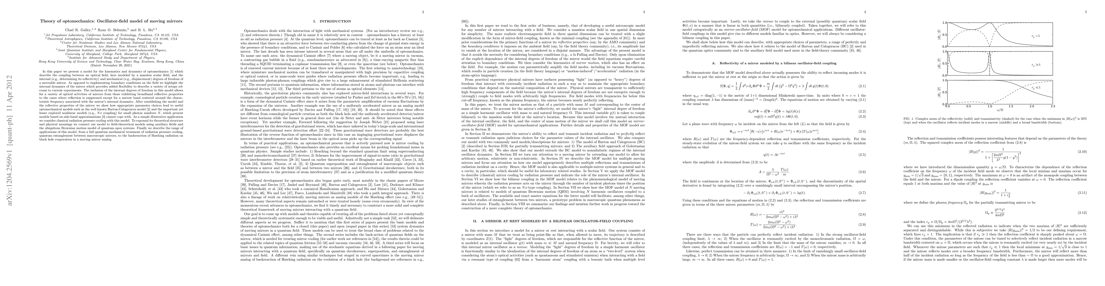 In this paper we present a model for the kinematics and dynamics of optomechanics which describe the coupling between an optical field, here modeled by a massless scalar field, and the internal (e.g., determining its reflectivity) and mechanical (e.g., displacement) degrees of freedom of a moveable mirror. As opposed to implementing boundary conditions on the field we highlight the internal dynamics of the mirror which provides added flexibility to describe a variety of setups relevant to current experiments. The inclusion of the internal degrees of freedom in this model allows for a variety of optical activities of mirrors from those exhibiting broadband reflective properties to the cases where reflection is suppressed except for a narrow band centered around the characteristic frequency associated with the mirror's internal dynamics. After establishing the model and the reflective properties of the mirror we show how appropriate parameter choices lead to useful optomechanical models such as the well known Barton-Calogeracos model [G. Barton and A. Calogeracos, Ann. Phys. 238, 227 (1995)] and the important yet lesser explored nonlinear models (e.g., $Nx$ coupling) for small photon numbers $N$, which present models based on side-band approximations [H. Kimble et al., Phys. Rev. D 65, 022002 (2001)] cannot cope with. As a simple illustrative application we consider classical radiation pressure cooling with this model. To expound its theoretical structure and physical meanings we connect our model to field-theoretical models using auxiliary fields and the ubiquitous Brownian motion model of quantum open systems. Finally we describe the range of applications of this model, from a full quantum mechanical treatment of radiation pressure cooling, quantum entanglement between macroscopic mirrors, to the backreaction of Hawking radiation on black hole evaporation in a moving mirror analog.