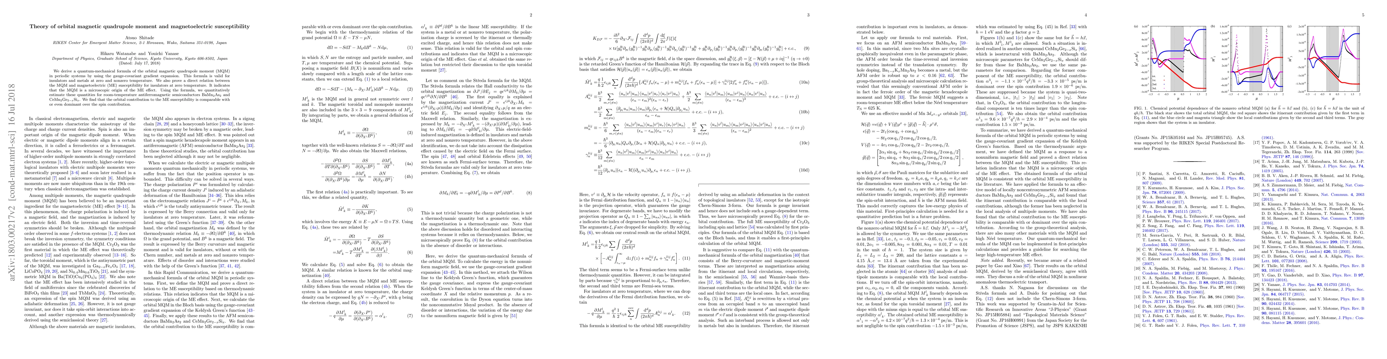 We derive a quantum-mechanical formula of the orbital magnetic quadrupole moment (MQM) in periodic systems by using the gauge-covariant gradient expansion. This formula is valid for insulators and metals at zero and finite temperature. We also prove a direct relation between the MQM and magnetoelectric (ME) susceptibility for insulators at zero temperature. It indicates that the MQM is a microscopic origin of the ME effect. Using the formula, we quantitatively estimate these quantities for room-temperature antiferromagnetic semiconductors BaMn$_2$As$_2$ and CeMn$_2$Ge$_{2 - x}$Si$_x$. We find that the orbital contribution to the ME susceptibility is comparable with or even dominant over the spin contribution.