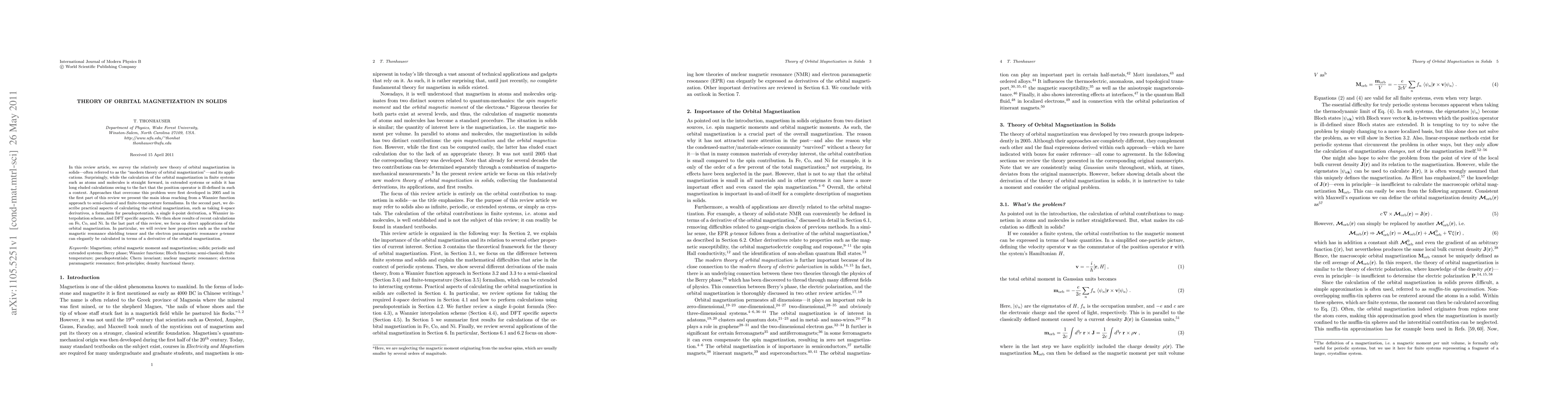 This review article surveys the modern theory of orbital magnetization in solids, detailing its calculation methods and applications, including the use of Wannier functions and pseudopotentials. It also demonstrates the theory's application in calculating nuclear magnetic resonance shielding tensors and electron paramagnetic resonance g-tensors.