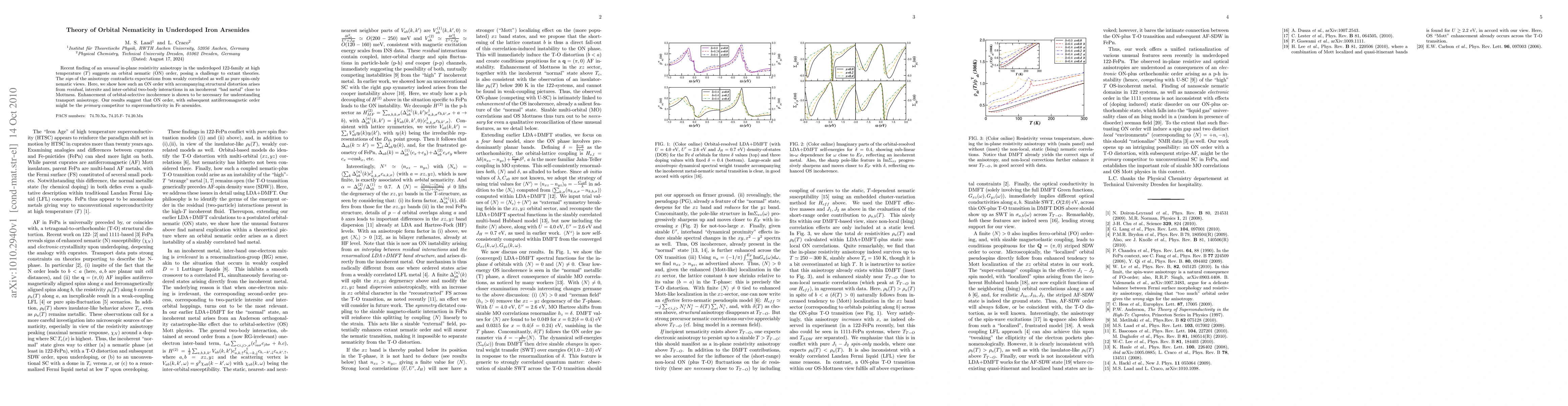 Recent finding of an {\it unusual} in-plane resistivity anisotropy in the underdoped 122-family at high temperature ($T$) suggests an orbital nematic (ON) order, posing a challenge to extant theories. The {\it sign} of the anisotropy contradicts expectations from weakly correlated as well as pure spin-only nematic views. Here, we show how such an ON order with accompanying structural distortion arises from {\it residual}, intersite and inter-orbital two-body interactions in an incoherent "bad metal" close to Mottness. Enhancement of orbital-selective incoherence is shown to be necessary for understanding transport anisotropy. Our results suggest that ON order, with subsequent antiferromagnetic order might be the {\it primary} competitor to superconductivity in Fe arsenides.