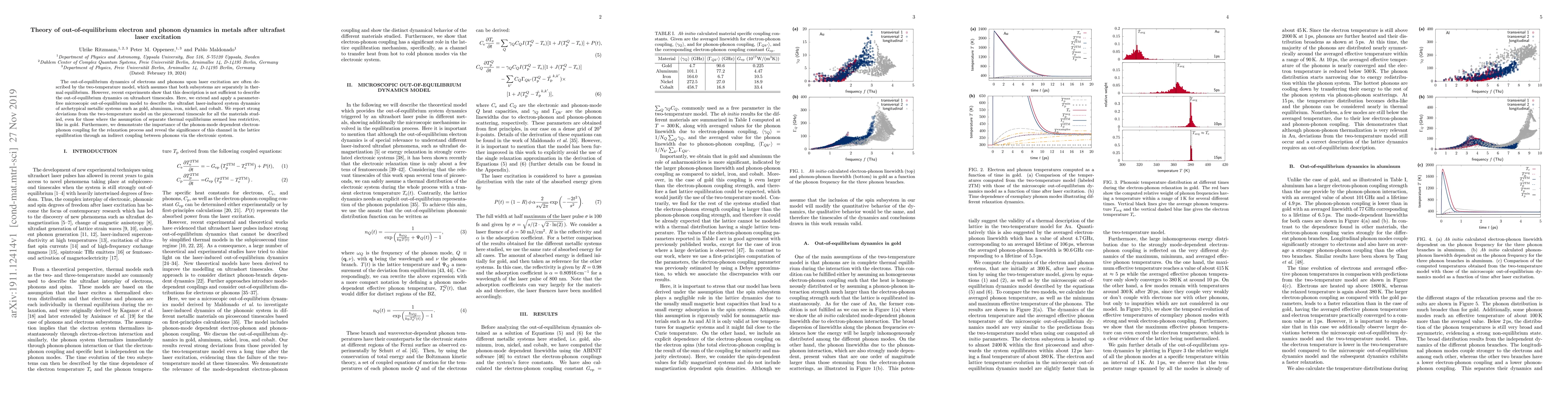 This research extends a microscopic model to describe ultrafast electron and phonon dynamics in metals post laser excitation, finding significant deviations from the traditional two-temperature model on picosecond timescales. It emphasizes the role of phonon-mode dependent electron-phonon coupling in the relaxation and lattice equilibration processes.