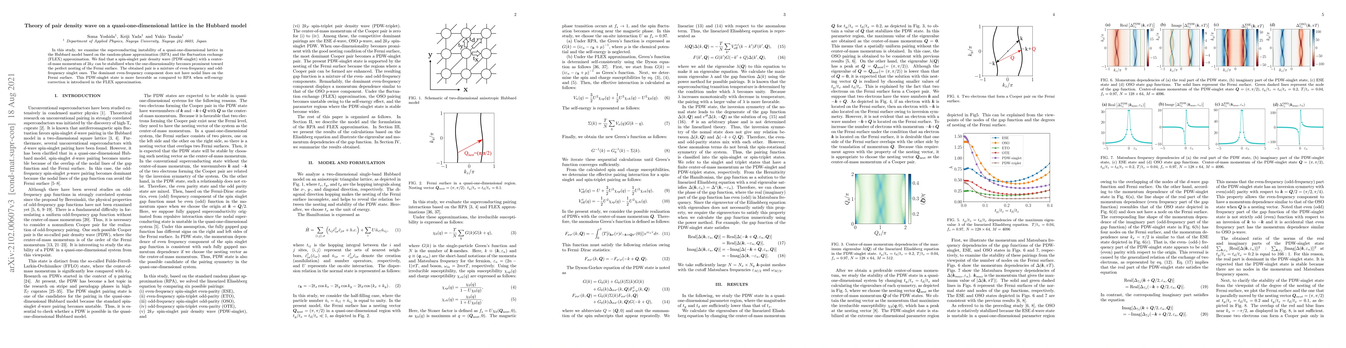 This paper investigates the superconducting instability in a quasi-one-dimensional Hubbard model, revealing that a spin-singlet pair density wave (PDW-singlet) with $2k_F$ momentum is stabilized due to perfect Fermi surface nesting. The PDW-singlet state, featuring a mixture of even- and odd-frequency components, is more favorable than the RPA prediction when self-energy corrections from the FLEX approximation are considered.