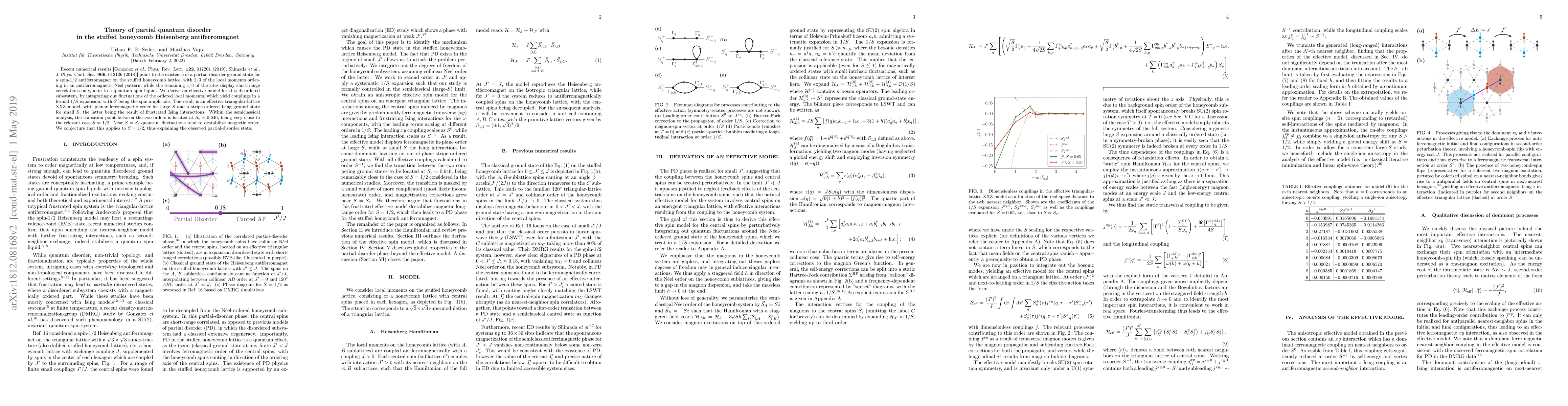 Recent numerical results [Gonzalez $\textit{et al.}$, Phys. Rev. Lett. $\textbf{122}$, 017201 (2019); Shimada $\textit{et al.}$, J. Phys. Conf. Ser. $\textbf{969}$, 012126 (2018)] point to the existence of a partial-disorder ground state for a spin-1/2 antiferromagnet on the stuffed honeycomb lattice, with 2/3 of the local moments ordering in an antiferromagnetic N\'eel pattern, while the remaining 1/3 of the sites display short-range correlations only, akin to a quantum spin liquid. We derive an effective model for this disordered subsystem, by integrating out fluctuations of the ordered local moments, which yield couplings in a formal $1/S$ expansion, with $S$ being the spin amplitude. The result is an effective triangular-lattice XXZ model, with planar ferromagnetic order for large $S$ and a stripe-ordered Ising ground state for small $S$, the latter being the result of frustrated Ising interactions. Within the semiclassical analysis, the transition point between the two orders is located at $S_c=0.646$, being very close to the relevant case $S=1/2$. Near $S=S_c$ quantum fluctuations tend to destabilize magnetic order. We conjecture that this applies to $S=1/2$, thus explaining the observed partial-disorder state.