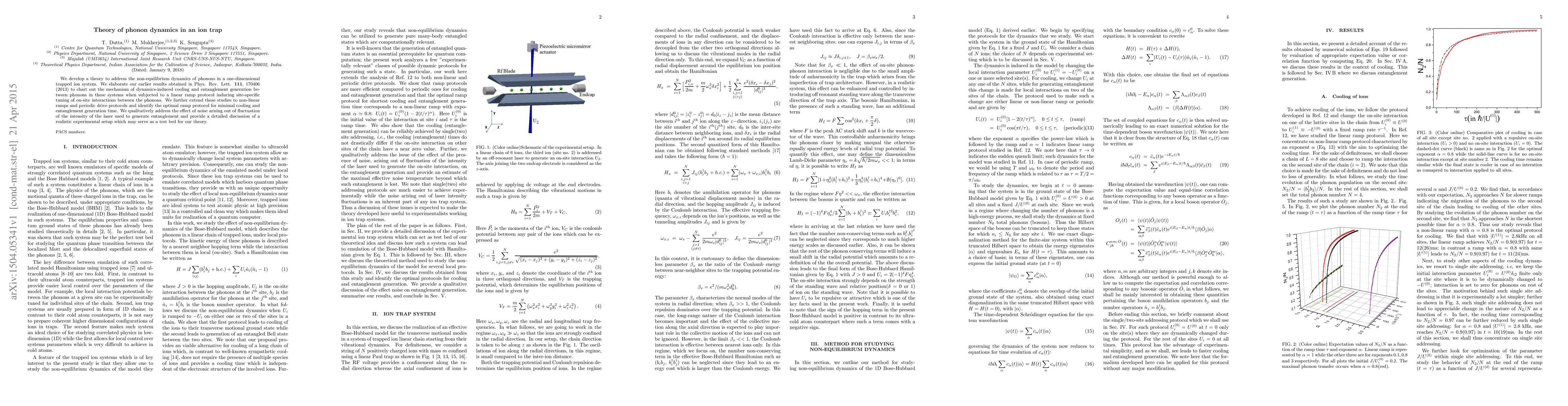 Researchers developed a theory to study phonon dynamics in ion traps, finding optimal ramp protocols for minimal cooling and entanglement generation, while addressing noise effects and proposing a realistic experimental setup.