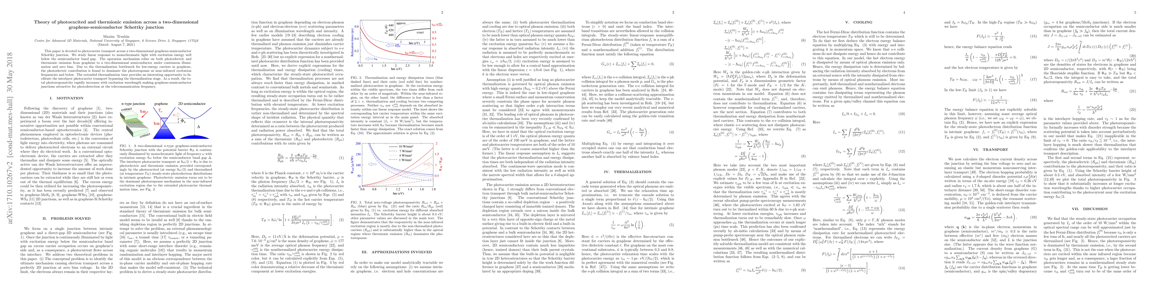 This paper explores photocarrier transport across a graphene-semiconductor Schottky junction, emphasizing the dominant role of photoelectric emission over thermionic emission under near-infrared and lower excitation frequencies. The extended thermalization time in graphene enhances interlayer photocarrier transport, significantly boosting photoresponsivity and making these junctions promising for photodetection applications.