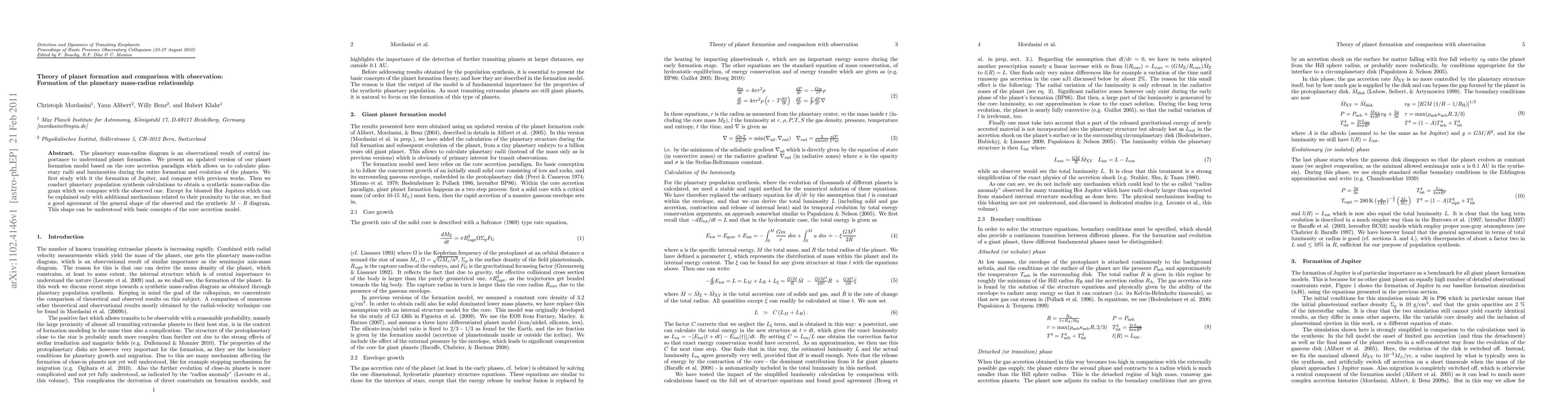 The planetary mass-radius diagram is an observational result of central importance to understand planet formation. We present an updated version of our planet formation model based on the core accretion paradigm which allows to calculate planetary radii and luminosities during the entire formation and evolution of the planets. We first study with it the formation of Jupiter, and compare with previous works. Then we conduct planetary population synthesis calculations to obtain a synthetic mass-radius diagram which we compare with the observed one. Except for bloated Hot Jupiters which can be explained only with additional mechanisms related to their proximity to the star, we find a good agreement of the general shape of the observed and the synthetic mass-radius diagram. This shape can be understood with basic concepts of the core accretion model.