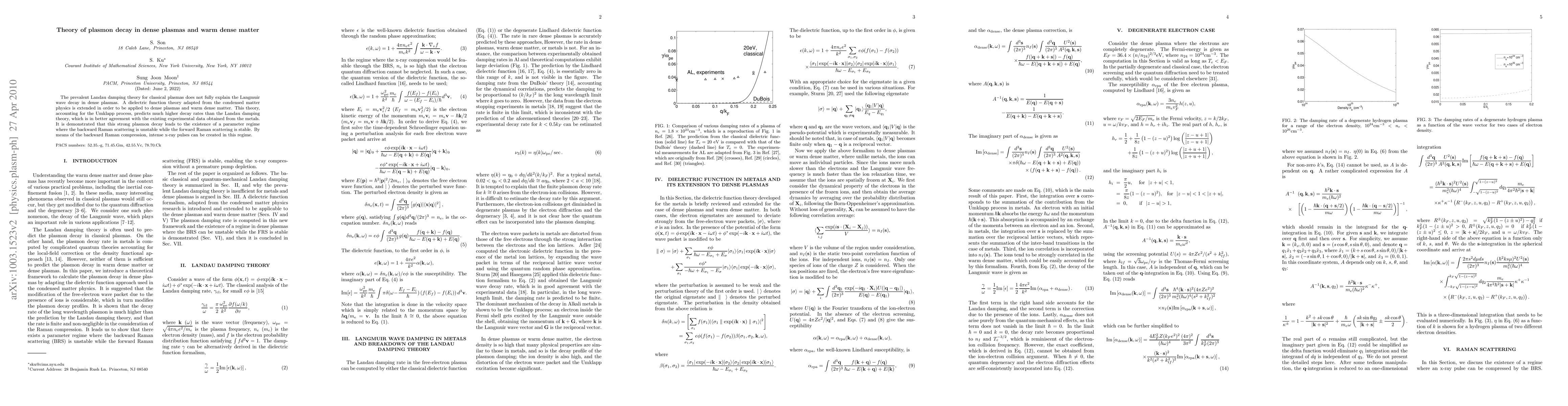 The decay of the Langmuir waves in dense plasmas is not accurately predicted by the prevalent Landau damping theory. A dielectric function theory is introduced, predicting much higher damping than the Landau damping theory. This strong damping is in better agreement with the experimentally observed data in metals. It is shown that the strong plasmon decay leads to the existence of a parameter regime where the backward Raman scattering is unstable while the forward Raman scattering is stable. This regime may be used to create intense x-ray pulses, by means of the the backward Raman compression. The optimal pulse duration and intensity is estimated.