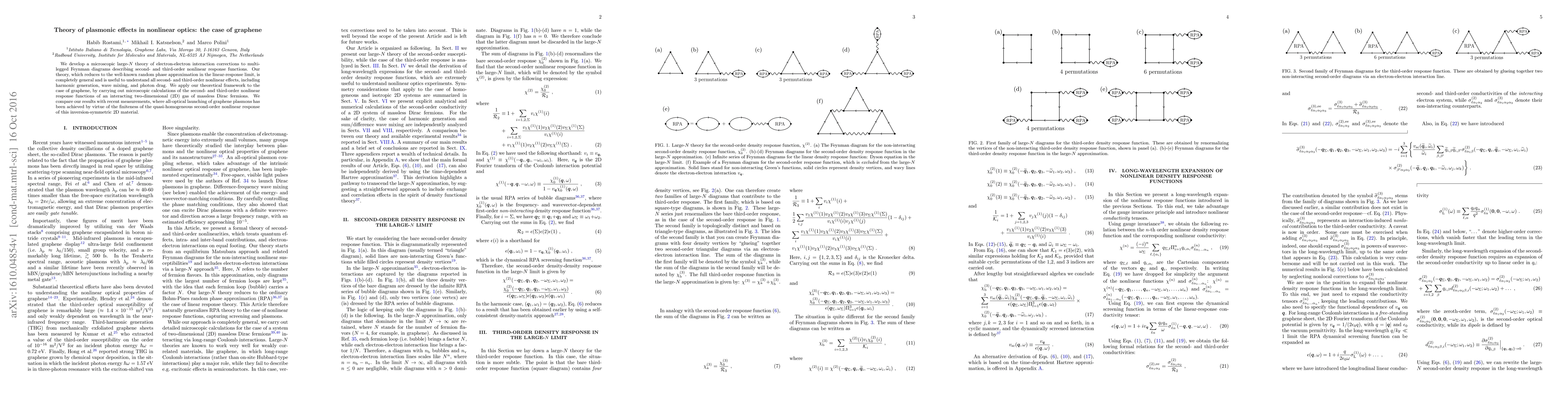 We develop a microscopic large-$N$ theory of electron-electron interaction corrections to multi-legged Feynman diagrams describing second- and third-order nonlinear response functions. Our theory, which reduces to the well-known random phase approximation in the linear-response limit, is completely general and is useful to understand all second- and third-order nonlinear effects, including harmonic generation, wave mixing, and photon drag. We apply our theoretical framework to the case of graphene, by carrying out microscopic calculations of the second- and third-order nonlinear response functions of an interacting two-dimensional (2D) gas of massless Dirac fermions. We compare our results with recent measurements, where all-optical launching of graphene plasmons has been achieved by virtue of the finiteness of the quasi-homogeneous second-order nonlinear response of this inversion-symmetric 2D material.