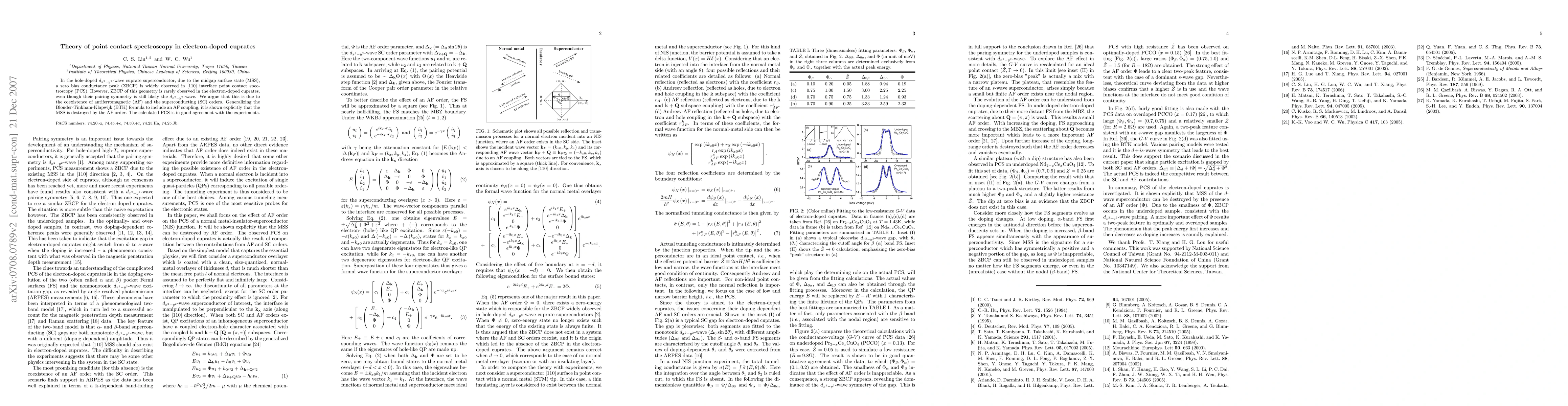 In the hole-doped $d_{x^{2}-y^{2}}$-wave cuprate superconductor, due to the midgap surface state (MSS), a zero bias conductance peak (ZBCP) is widely observed in [110] interface point contact spectroscopy (PCS). However, ZBCP of this geometry is rarely observed in the electron-doped cuprates, even though their pairing symmetry is still likely the $d_{x^{2}-y^{2}}$-wave. We argue that this is due to the coexistence of antiferromagnetic (AF) and the superconducting (SC) orders. Generalizing the Blonder-Tinkham-Klapwijk (BTK) formula to include an AF coupling, it is shown explicitly that the MSS is destroyed by the AF order. The calculated PCS is in good agreement with the experiments.