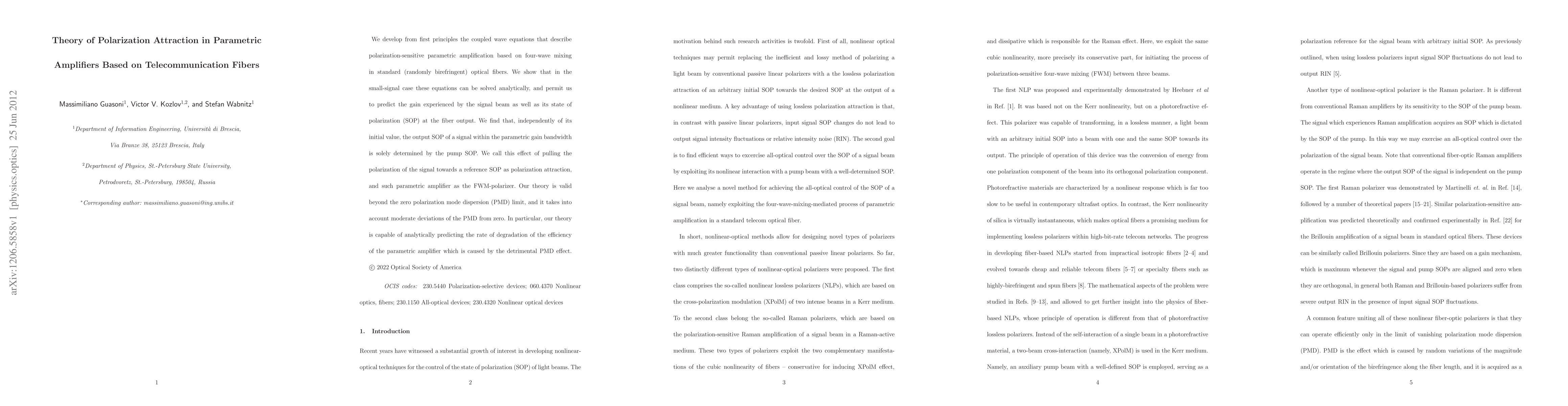This paper develops coupled wave equations for polarization-sensitive parametric amplification in telecommunication fibers, revealing a phenomenon called polarization attraction. The theory predicts the gain and polarization state of signal beams, showing that the output polarization is determined by the pump polarization, and it can analytically predict efficiency degradation due to polarization mode dispersion.