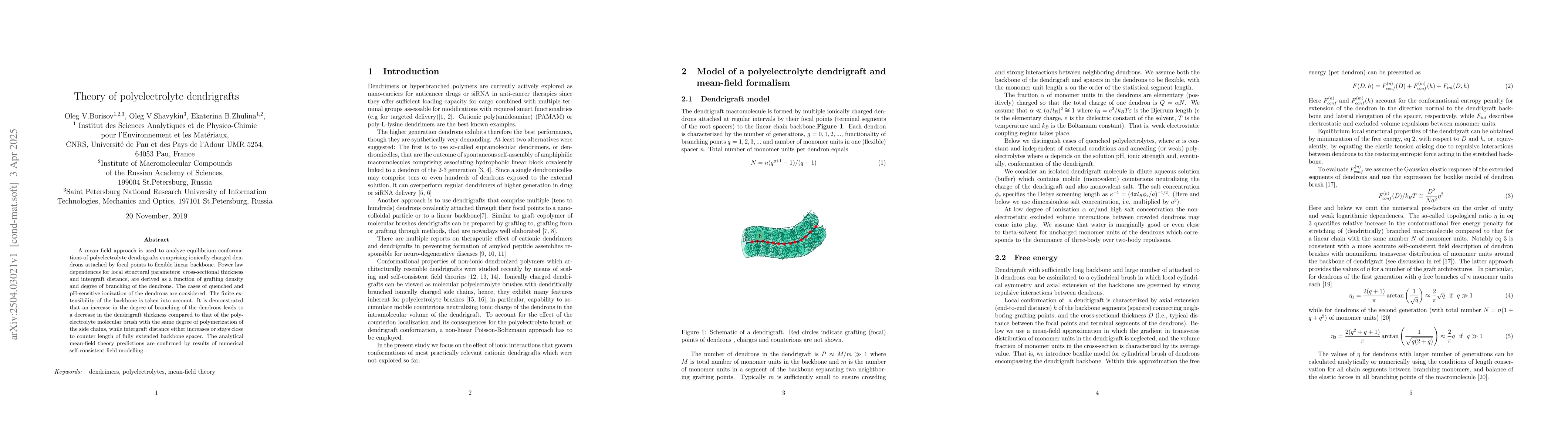 Development and validation of a mean-field theory for predicting structural parameters of polyelectrolyte dendrigrafts, supported by self-consistent field modelling.