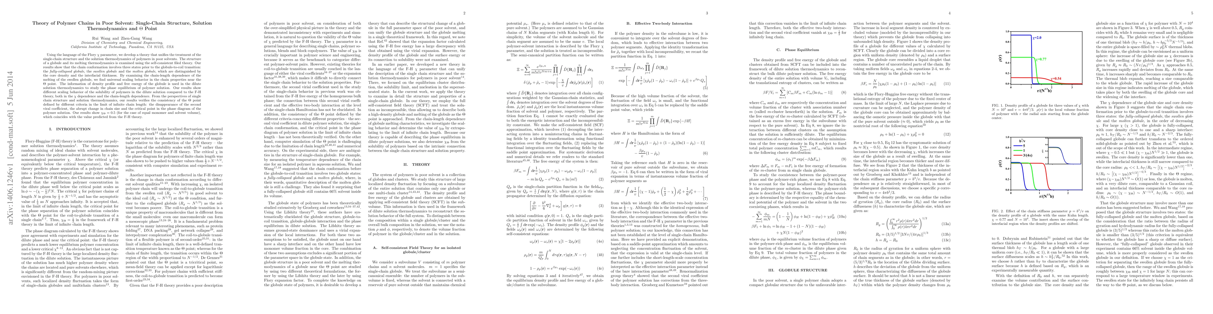 Using the language of the Flory chi parameter, we develop a theory that unifies the treatment of the single-chain structure and the solution thermodynamics of polymers in poor solvents. The structure of a globule and its melting thermodynamics is examined using the self-consistent filed theory. Our results show that the chain conformation involves three states prior to the globule-to-coil transition: the fully-collapsed globule, the swollen globule and the molten globule, which are distinguished by the core density and the interfacial thickness. By examining the chain-length dependence of the melting of the swollen globule, we find universal scaling behavior in the chain properties near the Theta point. The information of density profile and free energy of the globule is used in the dilute solution thermodynamics to study the phase equilibrium of polymer solution. Our results show different scaling behavior of the solubility of polymers in the dilute solution compared to the F-H theory, both in the chi dependence and the chain-length dependence. From the perspectives of single chain structure and solution thermodynamics, our results verifies the consistency of the Theta point defined by different criteria in the limit of infinite chain length: the disappearance of the second viral coefficient, the abrupt change in chain size and the critical point in the phase diagram of the polymer solution. Our results show the value of chi at the Theta point is 0.5 (for the case of equal monomer and solvent volume), which coincides with the value predicted from the F-H theory.