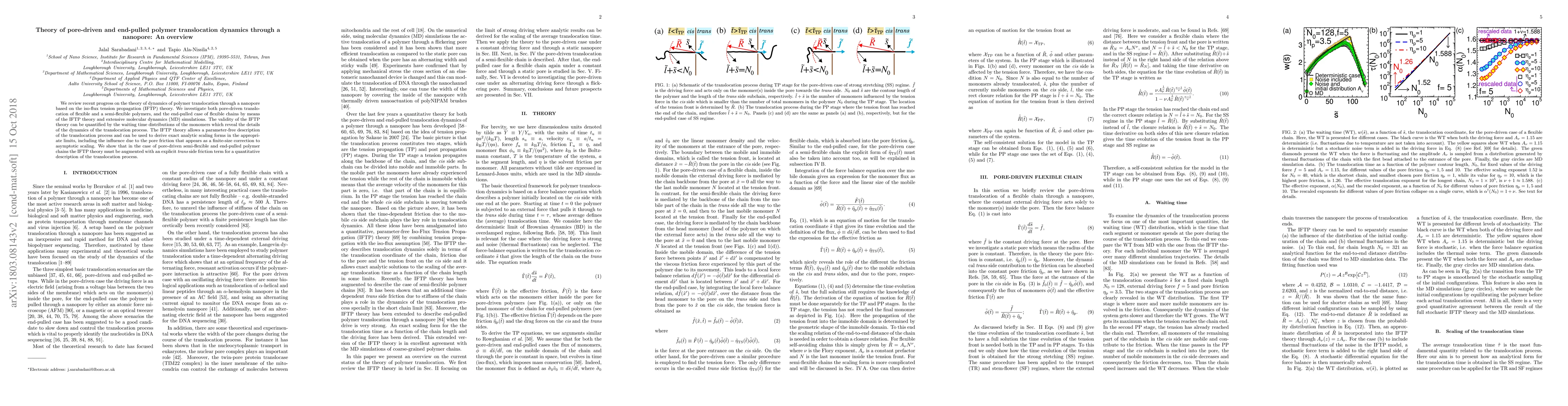 The research presents a review of recent theoretical progress on the dynamics of polymer translocation through a nanopore, combining non-equilibrium tension propagation on the cis side with an iso-flux assumption of monomer density at the pore, leading to the iso-flux tension propagation (IFTP) theory.