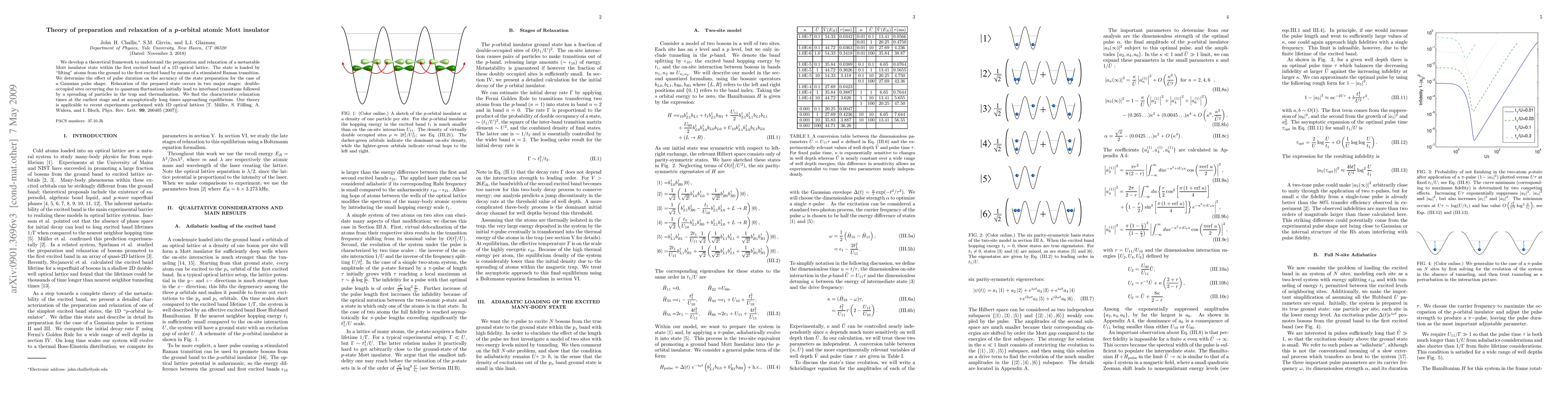 We develop a theoretical framework to understand the preparation and relaxation of a metastable Mott insulator state within the first excited band of a 1D optical lattice. The state is loaded by "lifting" atoms from the ground to the first excited band by means of a stimulated Raman transition. We determine the effect of pulse duration on the accuracy of the state preparation for the case of a Gaussian pulse shape. Relaxation of the prepared state occurs in two major stages: double-occupied sites occurring due to quantum fluctuations initially lead to interband transitions followed by a spreading of particles in the trap and thermalization. We find the characteristic relaxation times at the earliest stage and at asymptotically long times approaching equilibrium. Our theory is applicable to recent experiments performed with 1D optical lattices [T. M\"uller, S. F\"olling, A. Widera, and I. Bloch, Phys. Rev. Lett. \textbf{99}, 200405 (2007)].
