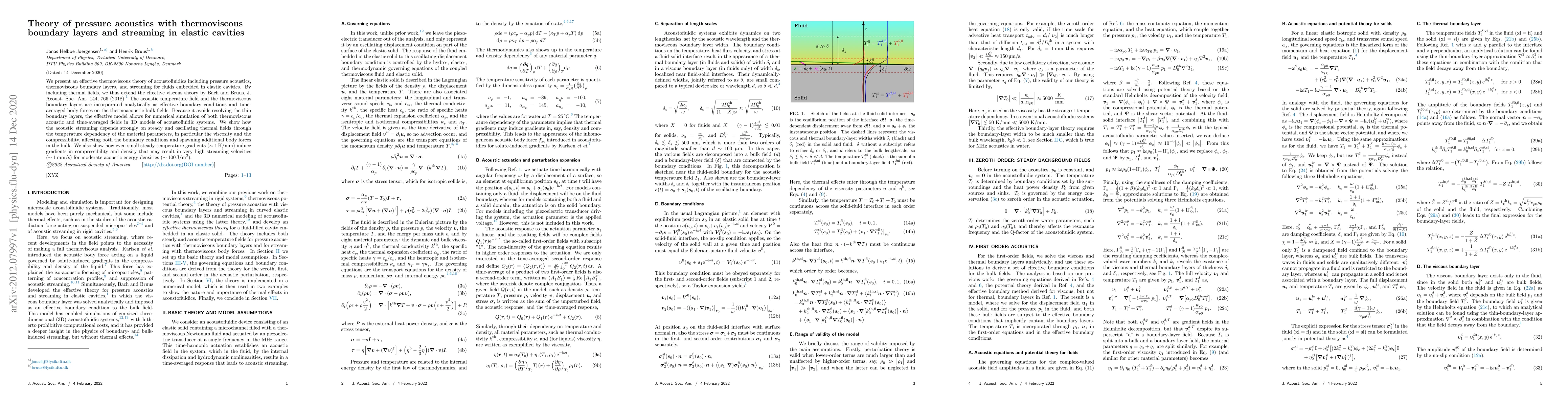 The research presents an effective thermoviscous theory for fluids embedded in elastic solids, incorporating pressure acoustics, thermoviscous boundary layers, and streaming through analytical incorporation of acoustic temperature fields and boundary layers as effective boundary conditions and time-averaged body forces on bulk thermoacoustic fields, avoiding resolution of thin boundary layers.
