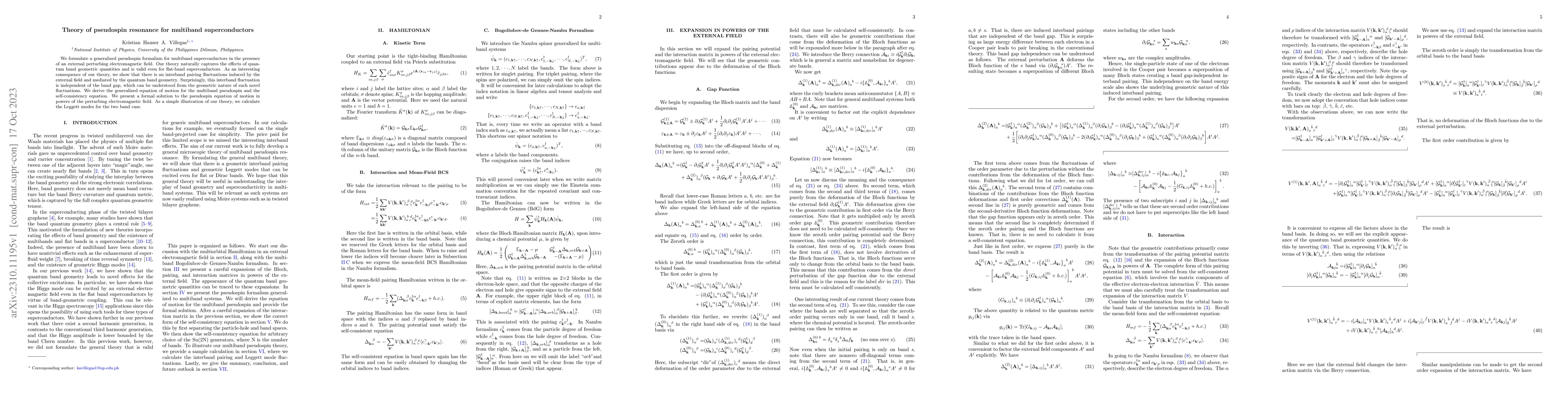 We formulate a generalized pseudospin formalism for multiband superconductors in the presence of an external perturbing electromagnetic field. Our theory naturally captures the effects of quantum band geometric quantities and is valid even for flat-band superconductors. As an interesting consequence of our theory, we show that there is an interband pairing fluctuations induced by the external field and mediated by the quantum band geometry. Surprisingly, this interband fluctuation is independent of the band gap, which can be understood from the geometric nature of such novel fluctuations. We derive the generalized equation of motion for the multiband pseudospin and the self-consistency equation. We present a formal solution to the pseudospin equation of motion in powers of the perturbing electromagnetic field. As a simple illustration of our theory, we calculate the Leggett modes for the two band case.