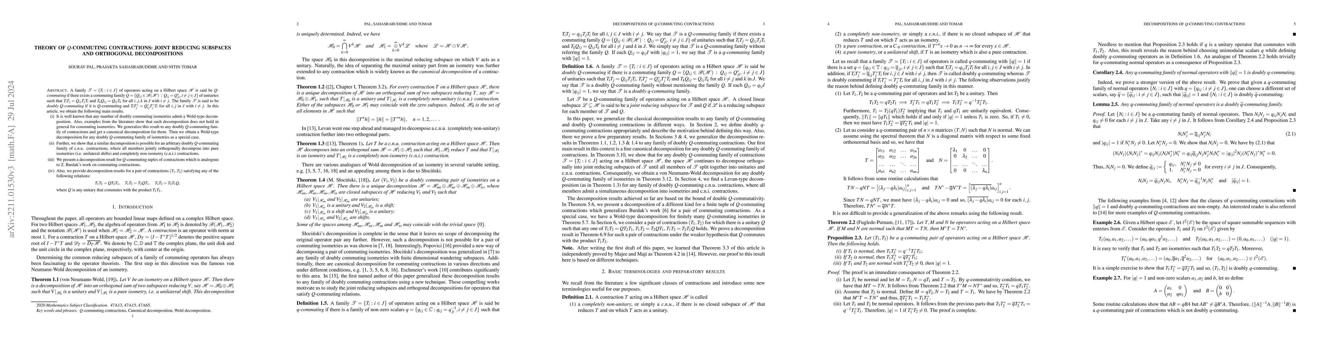 This paper generalizes canonical decomposition and dilation results for commuting contractions to q-commuting contractions, particularly focusing on q-commuting and doubly q-commuting scenarios where $|q|=1$ or $q$ is a unitary operator. It also explores Brehmer's positivity in this new context.