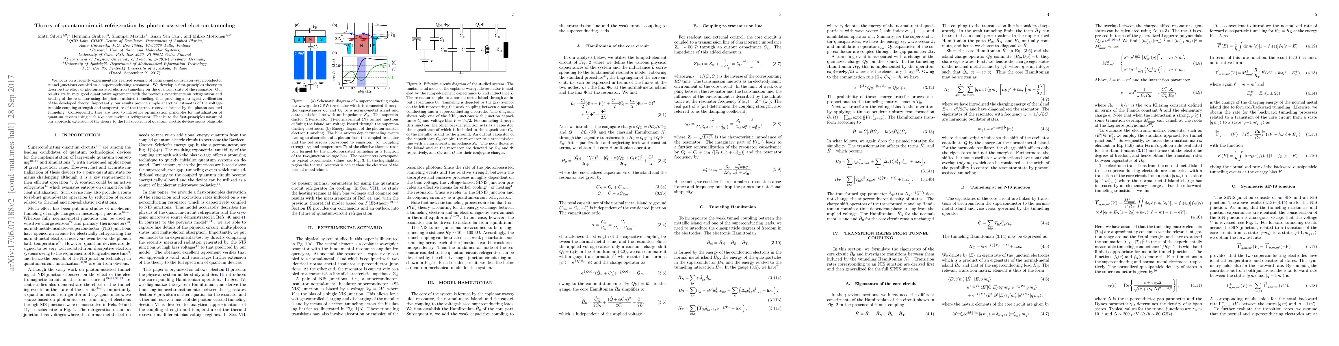 The research develops a first-principles theory for quantum-circuit refrigeration using photon-assisted electron tunneling in a normal-metal-insulator-superconductor (SINIS) tunnel junction coupled to a superconducting resonator.