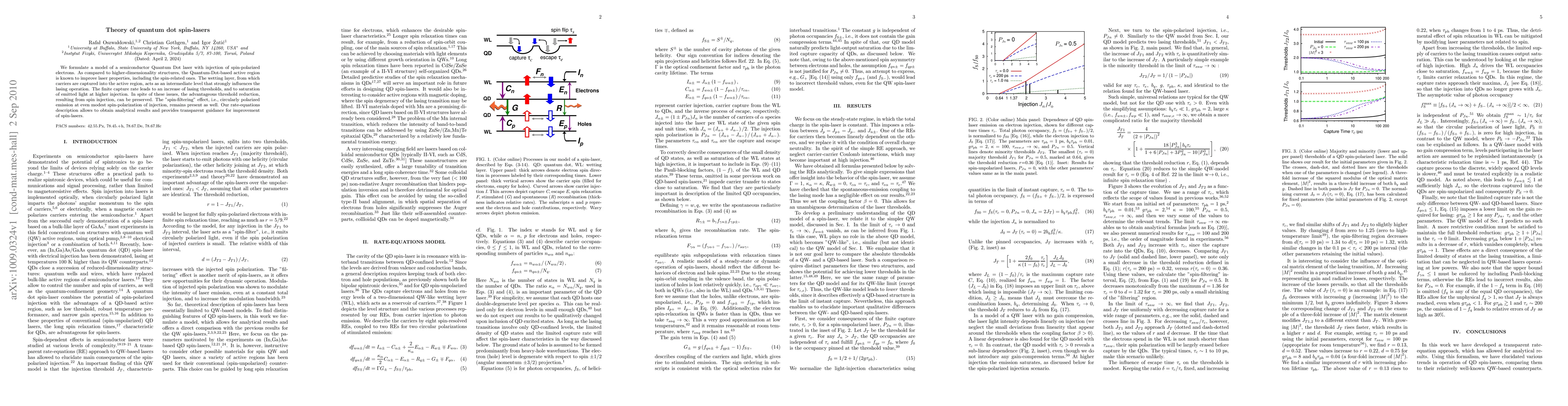 The paper presents a detailed rate-equation model for quantum dot spin-lasers, providing analytical results and insights into the influence of finite capture rates and spin relaxation times.
