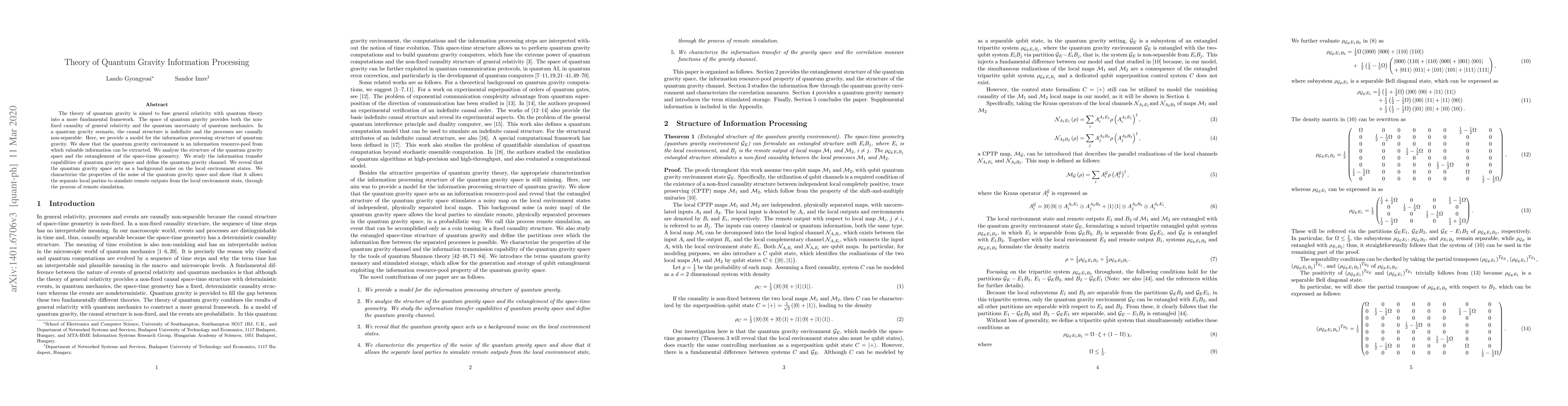 The theory of quantum gravity is aimed to fuse general relativity with quantum theory into a more fundamental framework. The space of quantum gravity provides both the non-fixed causality of general relativity and the quantum uncertainty of quantum mechanics. In a quantum gravity scenario, the causal structure is indefinite and the processes are causally non-separable. Here, we provide a model for the information processing structure of quantum gravity. We show that the quantum gravity environment is an information resource-pool from which valuable information can be extracted. We analyze the structure of the quantum gravity space and the entanglement of the space-time geometry. We study the information transfer capabilities of quantum gravity space and define the quantum gravity channel. We reveal that the quantum gravity space acts as a background noise on the local environment states. We characterize the properties of the noise of the quantum gravity space and show that it allows the separate local parties to simulate remote outputs from the local environment state, through the process of remote simulation.