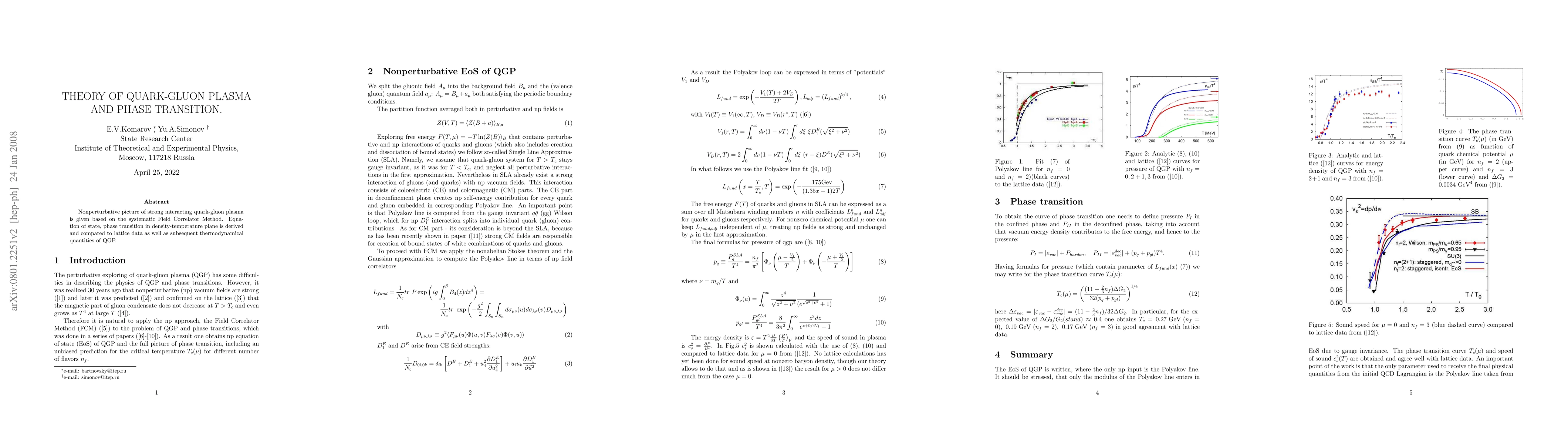 This paper presents a nonperturbative framework for understanding the quark-gluon plasma using the Field Correlator Method, deriving the equation of state and phase transition, and compares these findings to lattice data and thermodynamical properties of QGP.