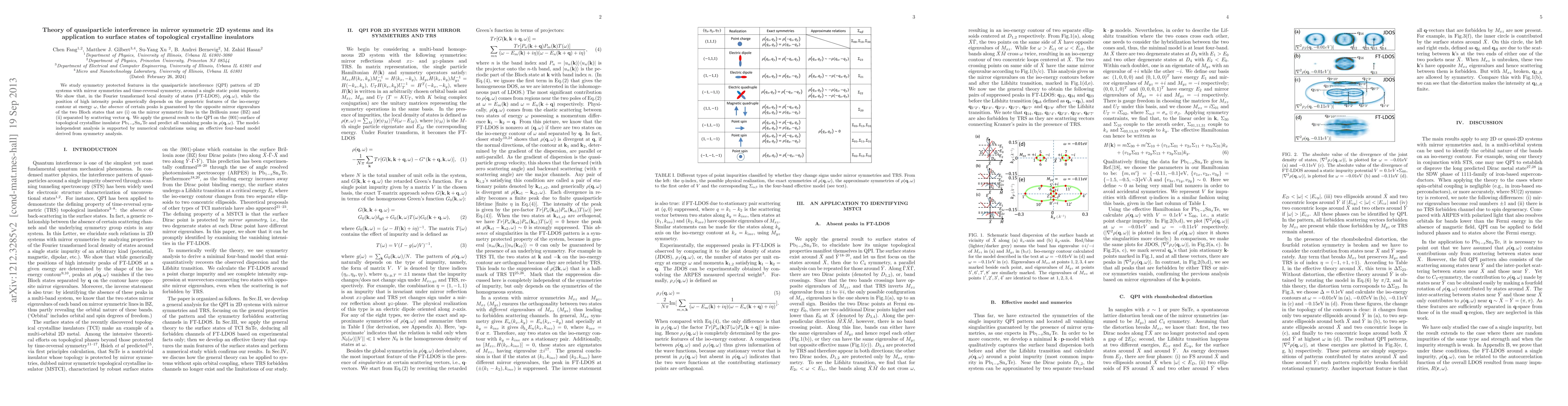 We study symmetry protected features in the quasiparticle interference (QPI) pattern of 2D systems with mirror symmetries and time-reversal symmetry, around a single static point impurity. We show that, in the Fourier transformed local density of states (FT-LDOS), $\rho(\bq,\omega)$, while the position of high intensity peaks generically depends on the geometric features of the iso-energy contour at energy $\omega$, the \emph{absence} of certain peaks is guaranteed by the opposite mirror eigenvalues of the two Bloch states that are (i) on the mirror symmetric lines in the Brillouin zone (BZ) and (ii) separated by scattering vector $\bq$. We apply the general result to the QPI on the $ <{001} >$-surface of topological crystalline insulator Pb$_{1-x}$Sn$_x$Te and predict all vanishing peaks in $\rho(\bq,\omega)$. The model-independent analysis is supported by numerical calculations using an effective four-band model derived from symmetry analysis.