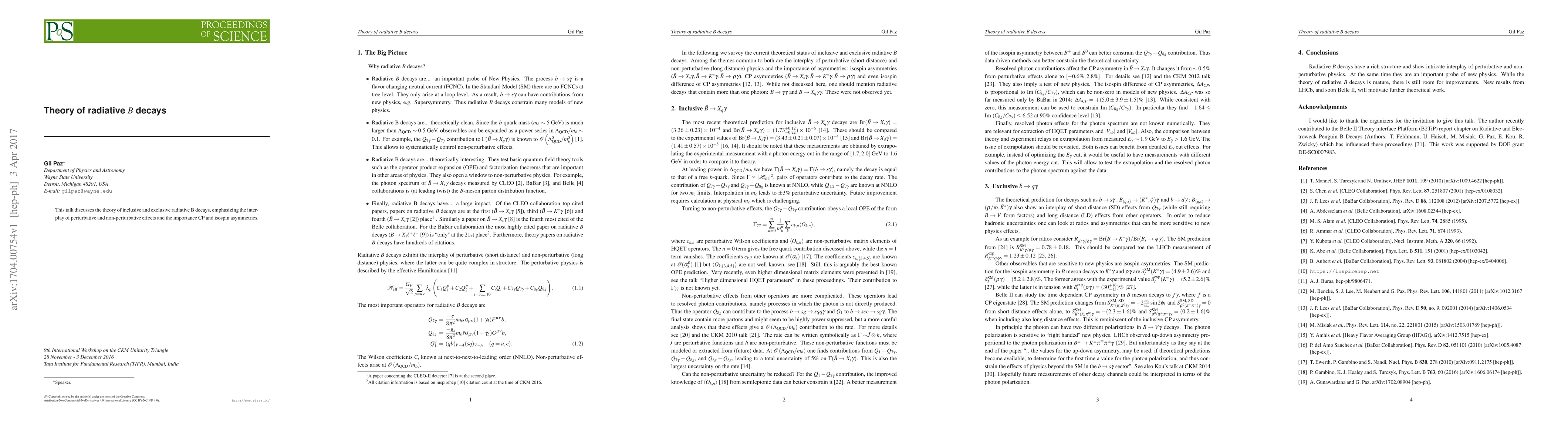 Summary: This paper explores the theoretical framework for both inclusive and exclusive radiative B decays, highlighting the significance of both perturbative and non-perturbative effects, as well as the roles of CP and isospin asymmetries in these processes.