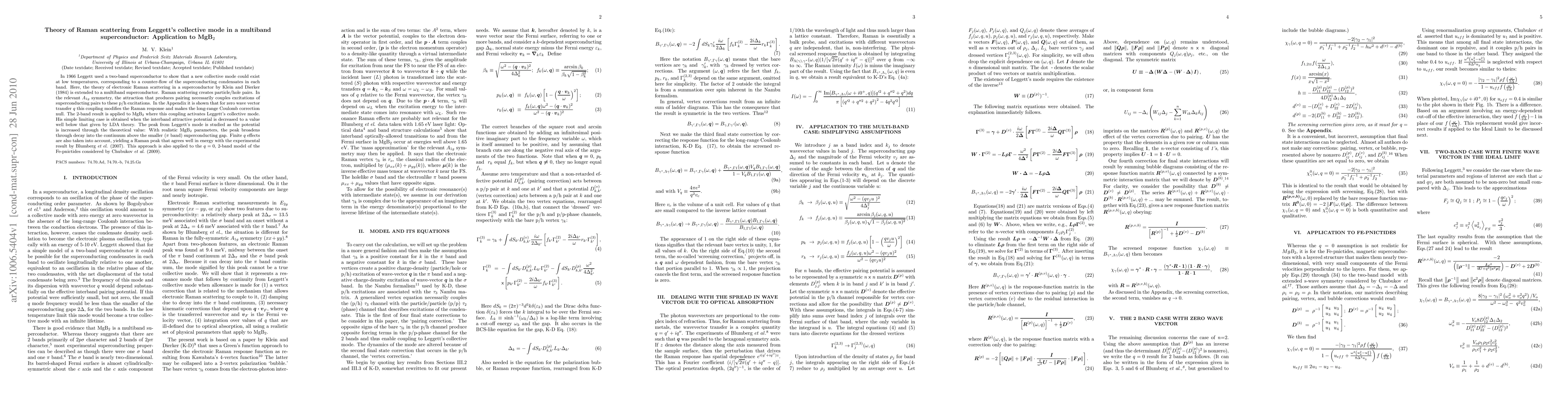 In 1966 Leggett used a two-band superconductor to show that a new collective mode could exist at low temperatures, corresponding to a counter-flow of the superconducting condensates in each band. Here, the theory of electronic Raman scattering in a superconductor by Klein and Dierker (1984) is extended to a multiband superconductor. Raman scattering creates particle/hole pairs. In the relevant $A_{1g}$\ symmetry, the attraction that produces pairing necessarily couples excitations of superconducting pairs to these p/h excitations. In the Appendix it is shown that for zero wave vector transfer $% q$ this coupling modifies the Raman response and makes the long-range Coulomb correction null. The 2-band result is applied to MgB$_{2}$ where this coupling activates Leggett's collective mode. His simple limiting case is obtained when the interband attractive potential is decreased to a value well below that given by LDA theory. The peak from Leggett's mode is studied as the potential is increased through the theoretical value: With realistic MgB$_{2}$\ parameters, the peak broadens through decay into the continuum above the smaller ($\pi $ band) superconducting gap. Finite $q$ effects are also taken into account, yielding a Raman peak that agrees well in energy with the experimental result by Blumberg \textit{et el.} (2007). This approach is also applied to the $q=0$, 2-band model of the Fe-pnictides considered by Chubukov \textit{et al.}(2009).