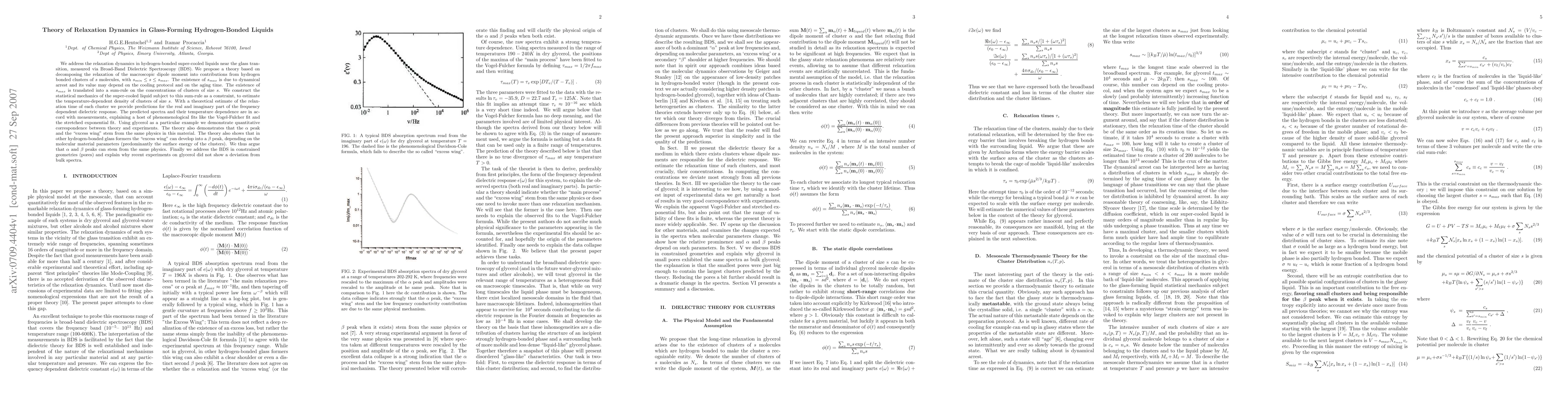 This paper proposes a theory to explain the relaxation dynamics in super-cooled hydrogen-bonded liquids near the glass transition, using Broad-Band Dielectric Spectroscopy. It decomposes the macroscopic dipole moment relaxation into contributions from hydrogen-bonded clusters, predicting the frequency-dependent dielectric response and explaining phenomena like the $\alpha$ and $\beta$ peaks.