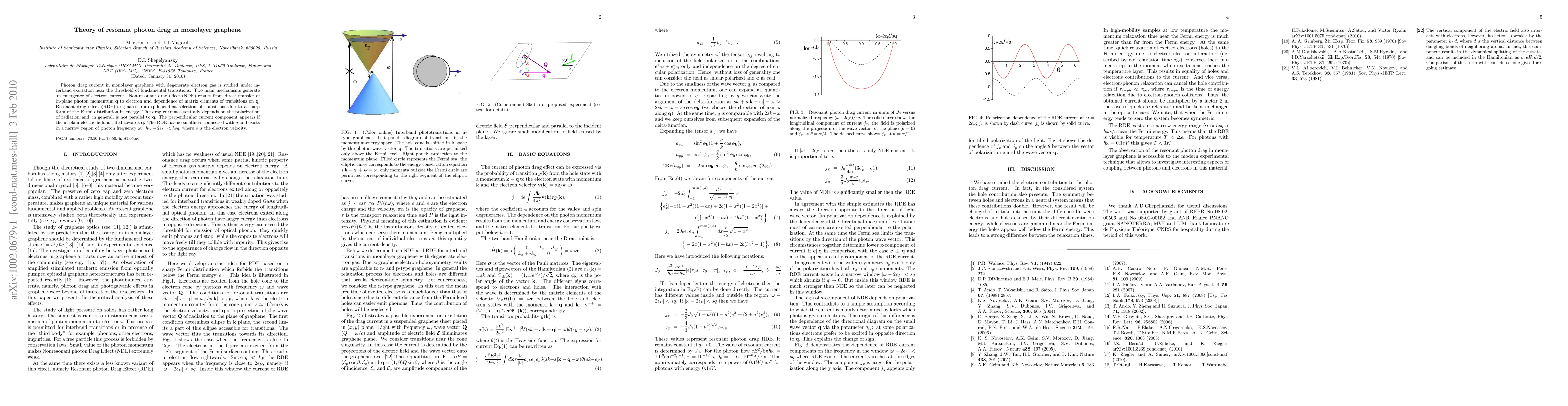 Photon drag current in monolayer graphene with degenerate electron gas is studied under interband excitation near the threshold of fundamental transitions. Two main mechanisms generate an emergence of electron current. Non-resonant drag effect (NDE) results from direct transfer of in-plane photon momentum ${\bf q}$ to electron and dependence of matrix elements of transitions on ${\bf q}$. Resonant drag effect (RDE) originates from ${\bf q}$-dependent selection of transitions due to a sharp form of the Fermi distribution in energy. The drag current essentially depends on the polarization of radiation and, in general, is not parallel to ${\bf q}$. The perpendicular current component appears if the in-plain electric field is tilted towards ${\bf q}$. The RDE has no smallness connected with $q$ and exists in a narrow region of photon frequency $\omega$: $|\hbar\omega-2\epsilon_F|< \hbar sq$, where $s$ is the electron velocity.