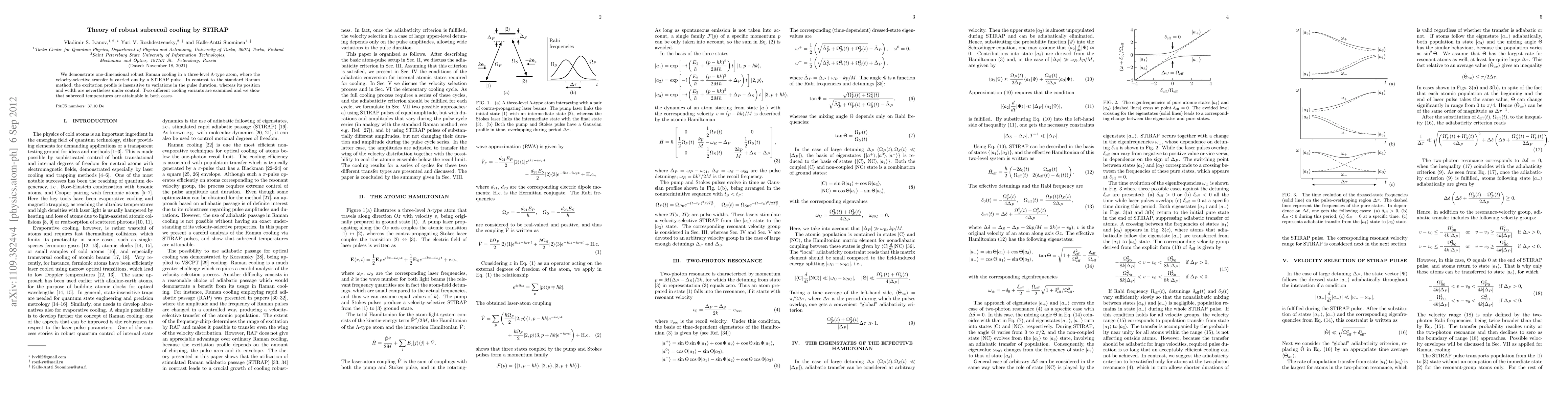This research demonstrates robust one-dimensional Raman cooling in a $\Lambda$-type atom using STIRAP pulses, achieving subrecoil temperatures while maintaining insensitivity to pulse duration variations, thus enhancing control over cooling position and width. Two cooling variants are explored, both capable of reaching subrecoil temperatures.