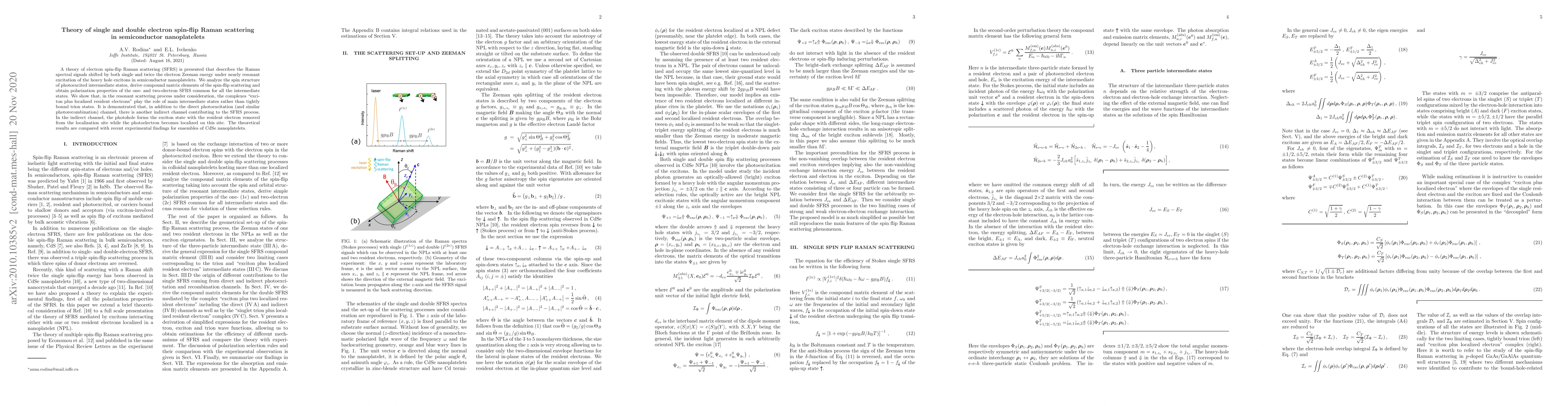 This paper presents a theoretical framework for electron spin-flip Raman scattering in semiconductor nanoplatelets, focusing on both single and double spin-flip processes. The study reveals that "exciton plus localized resident electrons" complexes are key intermediate states, and introduces an indirect channel contributing to the scattering process, corroborated by experimental data on CdSe nanoplatelets.