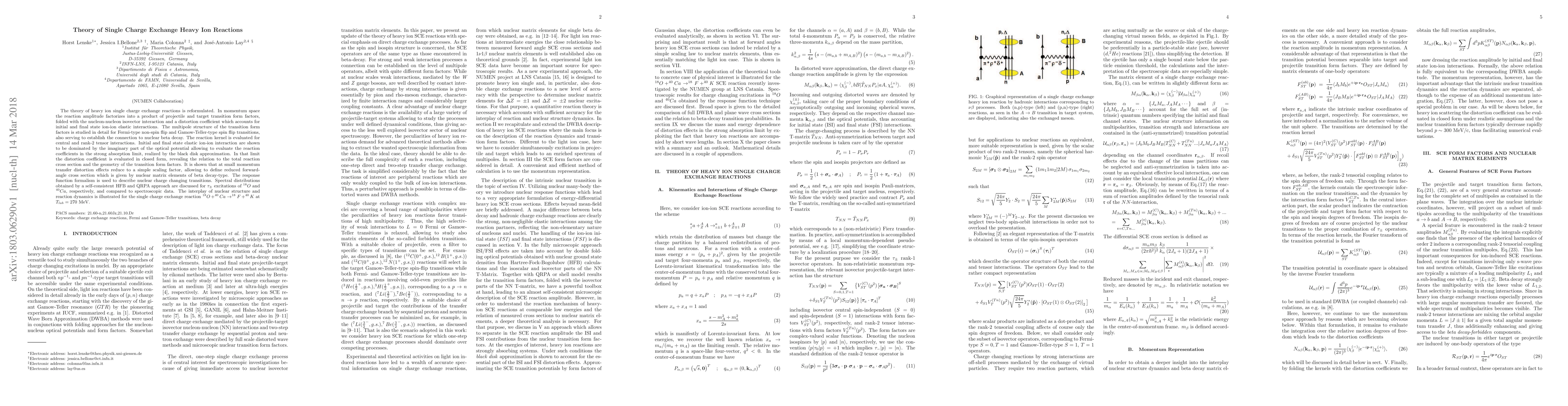 The theory of heavy ion single charge exchange reactions is reformulated. In momentum space the reaction amplitude factorizes into a product of projectile and target transition form factors, folded with the nucleon-nucleon isovector interaction and a distortion coefficient which accounts for initial and final state ion-ion elastic interactions. The multipole structure of the transition form factors is studied in detail for Fermi-type non-spin flip and Gamow-Teller-type spin flip transitions, also serving to establish the connection to nuclear beta decay. The reaction kernel is evaluated for central and rank-2 tensor interactions. Initial and final state elastic ion-ion interaction are shown to be dominated by the imaginary part of the optical potential allowing to evaluate the reaction coefficients in the strong absorption limit, realized by the black disk approximation. In that limit the distortion coefficient is evaluated in closed form, revealing the relation to the total reaction cross section and the geometry of the transition form factors. It is shown that at small momentum transfer distortion effects reduce to a simple scaling factor, allowing to define reduced forward-angle cross section which is given by nuclear matrix elements of beta decay-type. The response function formalism is used to describe nuclear charge changing transitions. Spectral distributions obtained by a self-consistent HFB and QRPA approach are discussed for $\tau_\pm$ excitations of $^{18}O$ and $^{40}Ca$, respectively, and compared to spectroscopic data. The interplay of nuclear structure and reaction dynamics is illustrated for the single charge exchange reaction $^{18}O+^{40}Ca \to ^{18}F+^{40}K$ at $T_{lab}=270$ MeV.