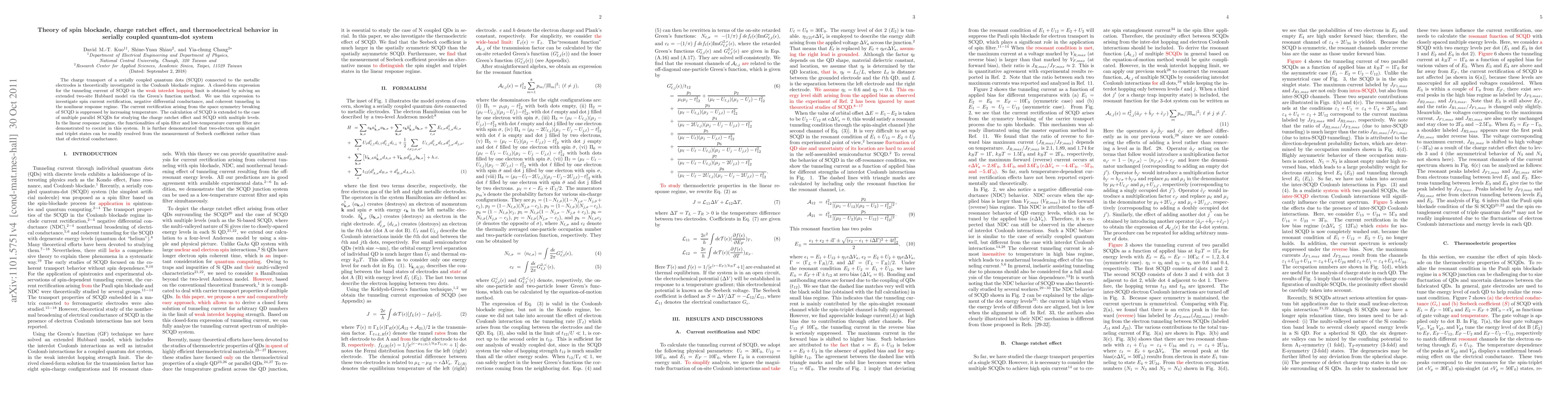 This paper investigates the charge transport in a serially coupled quantum dot system under Coulomb blockade, deriving a tunneling current expression and exploring phenomena like spin current rectification and negative differential conductance. It also examines the charge ratchet effect and thermoelectric behavior, revealing that spin singlet and triplet states can be distinguished via the Seebeck coefficient.