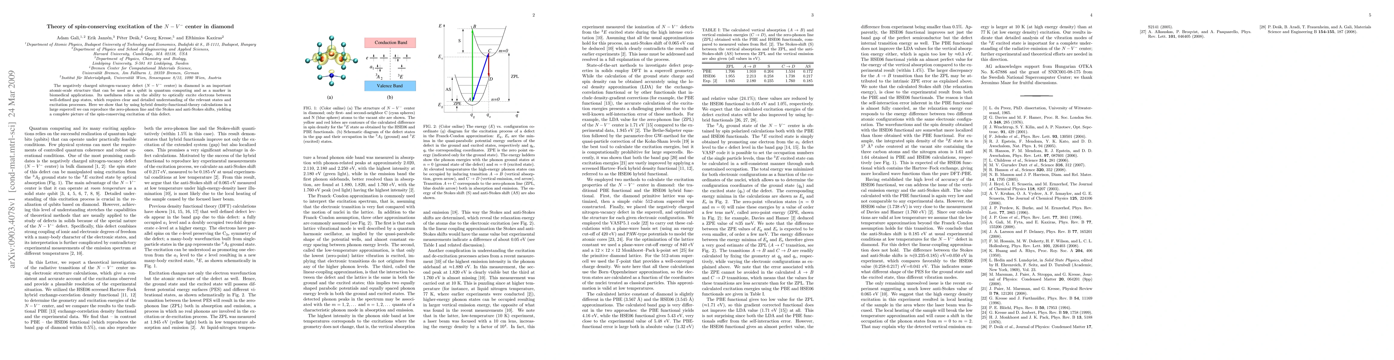 This research paper uses hybrid density-functional-theory calculations to study the spin-conserving excitation of the nitrogen-vacancy defect in diamond, reproducing its zero-phonon line and shifts for a complete understanding of its optical properties.