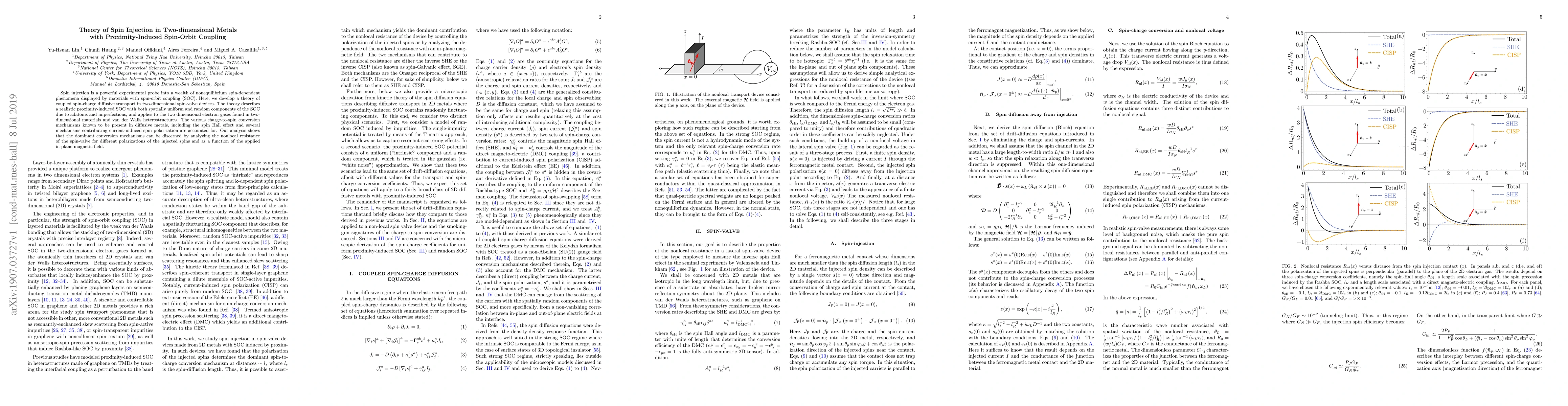 This paper develops a theory for spin injection in two-dimensional metals with proximity-induced spin-orbit coupling, focusing on coupled spin-charge transport in spin-valve devices. It accounts for both uniform and random components of spin-orbit coupling and various charge-to-spin conversion mechanisms, and suggests that the dominant mechanisms can be identified through analyzing nonlocal resistance.