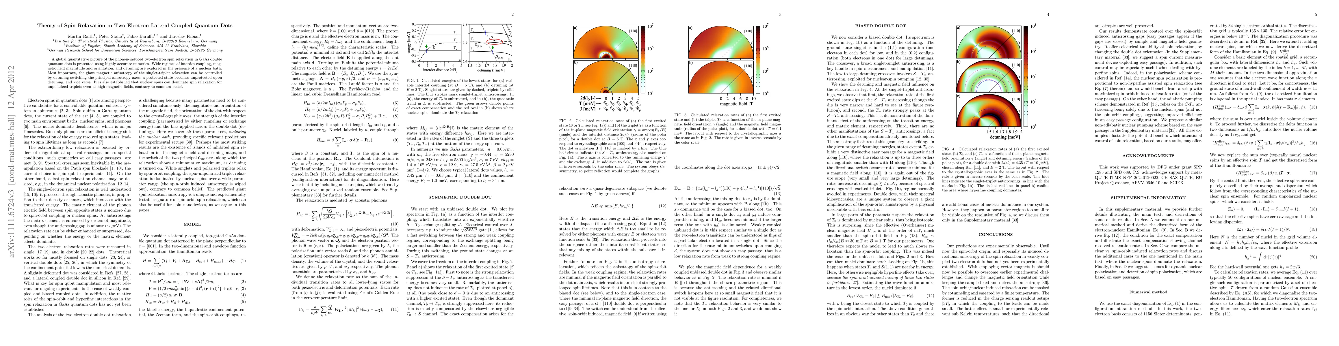 This paper provides a comprehensive numerical analysis of phonon-induced spin relaxation in GaAs double quantum dots, revealing that nuclear spins can dominate spin relaxation even at high magnetic fields. The study highlights the control of magnetic anisotropy through detuning, which switches the principal anisotropy axes and affects singlet-triplet relaxation, crucial for optimizing quantum dot designs in spin-based quantum information processing.