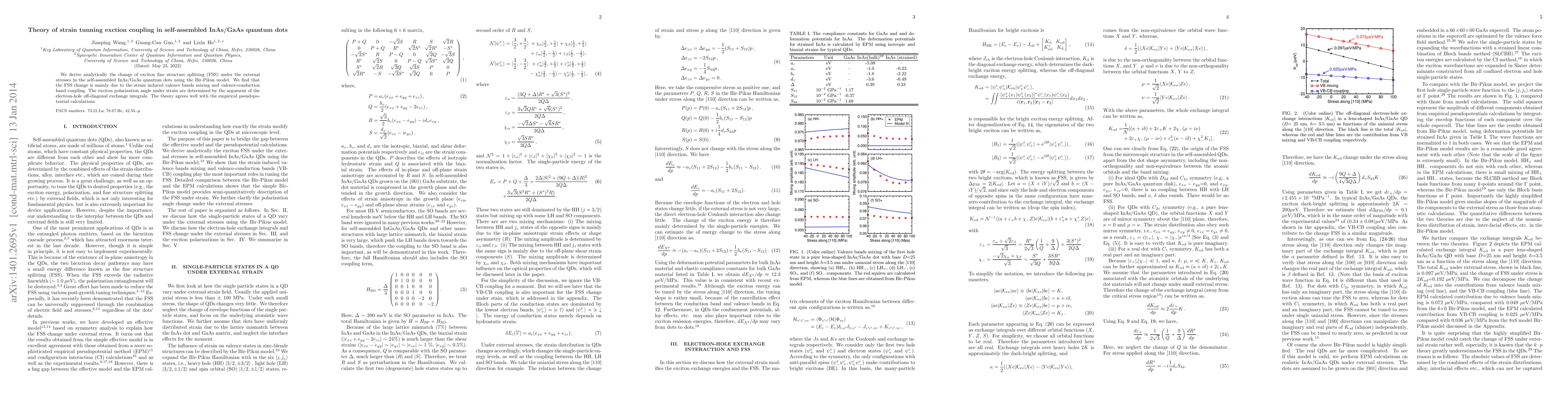 This paper analytically derives the impact of external stresses on the exciton fine structure splitting in InAs/GaAs quantum dots, attributing changes mainly to strain-induced valence band mixing and coupling, and validates the theory with pseudopotential calculations. The study reveals that the exciton polarization angle under strain depends on electron-hole exchange integrals.