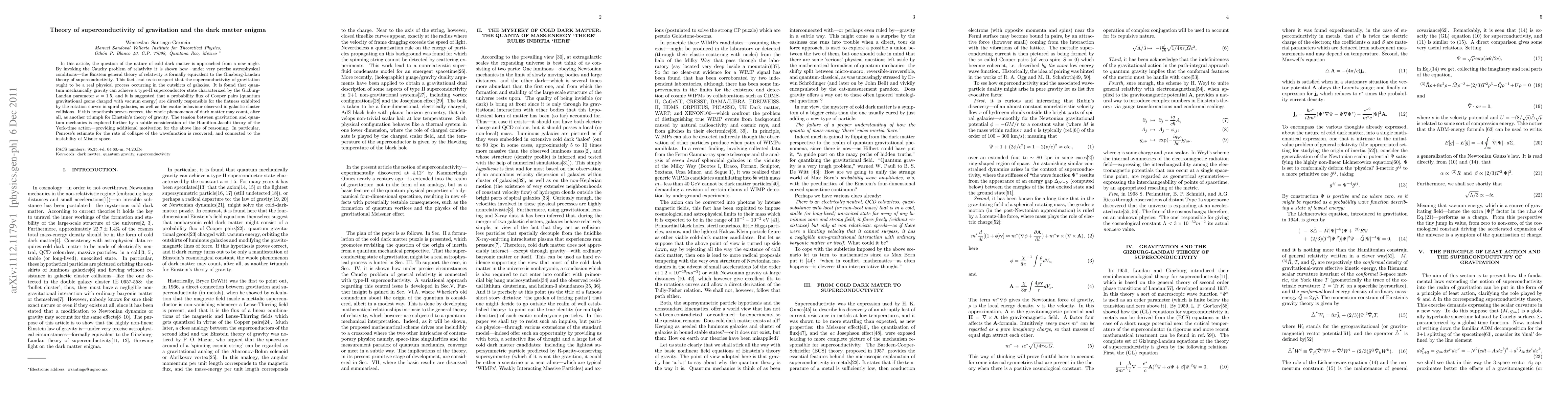In this article, the question of the nature of cold dark matter is approached from a new angle. By invoking the Cauchy problem of relativity it is shown how, under very precise astrophysical conditions, the Einstein general theory of relativity is formally equivalent to the Ginzburg-Landau theory of superconductivity. This fact lead us to suspect that the superconductivity of gravitation ought to be a real physical process occurring in the outskirts of galaxies. It is found that quantum mechanically gravity can achieve a type-II superconductor state characterised by the Gizburg-Landau parameter $\kappa=1.5$, and it is suggested that a probability flux of Cooper pairs (quantum gravitational geons charged with vacuum energy) are directly responsible for the flatness exhibited by the rotation curves in spiral galaxies, as well as the exotic behaviour observed in galactic cluster collisions. If this hypothesis proves correct, the whole phenomenon of dark matter may count, after all, as another triumph for Einstein's theory of gravity. The tension between gravitation and quantum mechanics is explored further by a subtle consideration of the Hamilton-Jacobi theory of the York-time action, providing additional motivation for the above line of reasoning. In particular, Penrose's estimate for the rate of collapse of the wavefunction is recovered, and connected to the instability of Misner space.