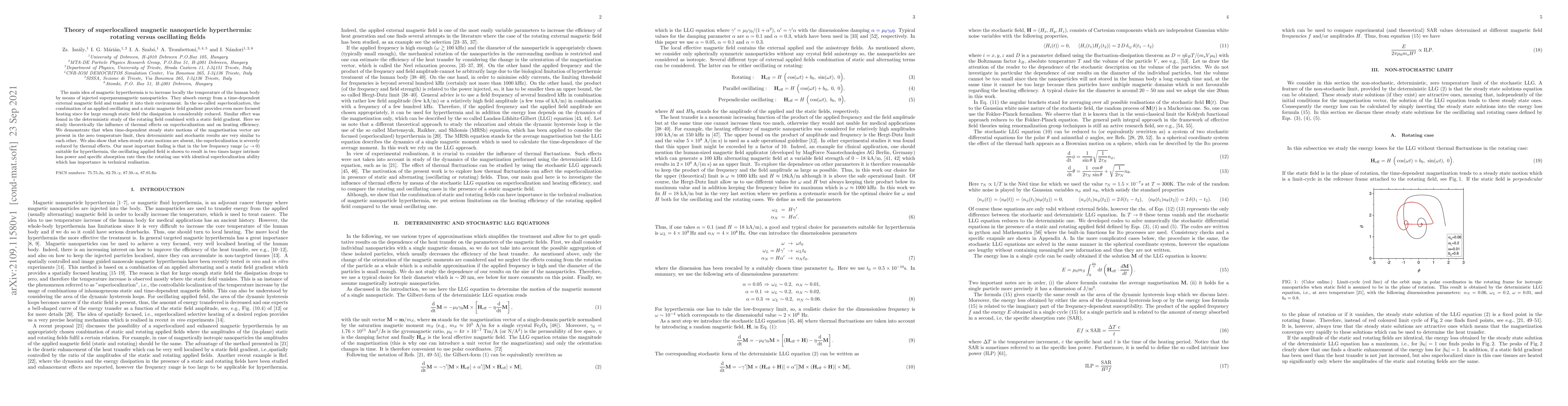 This paper theoretically investigates the efficiency of magnetic hyperthermia using superlocalized magnetic nanoparticles, comparing the effects of rotating versus oscillating magnetic fields. It finds that oscillating fields yield twice the intrinsic loss power and specific absorption rate compared to rotating fields, which is crucial for practical applications.