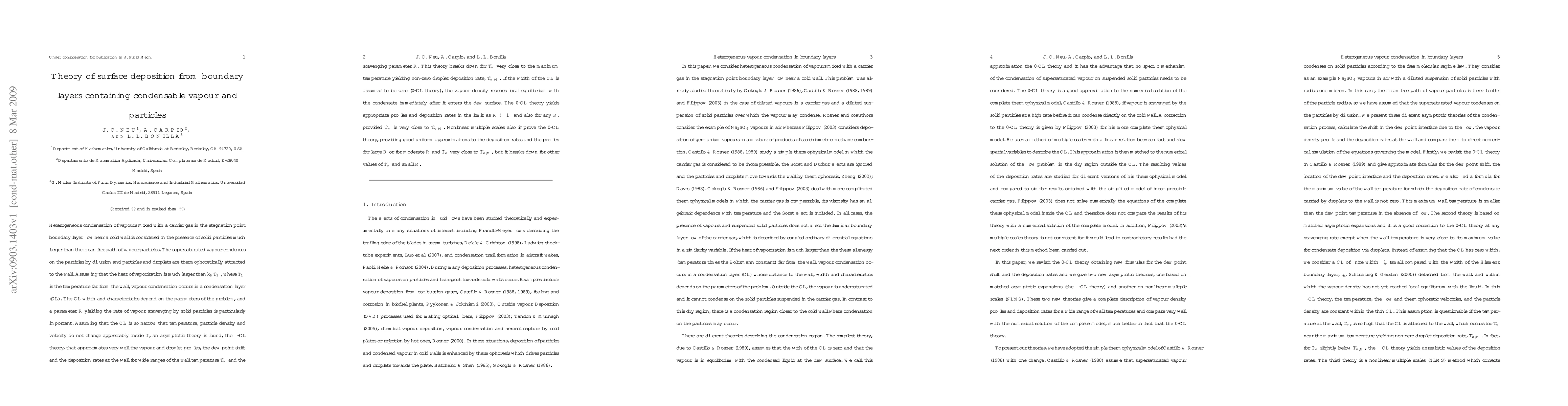 Heterogeneous condensation of vapours mixed with a carrier gas in the stagnation point boundary layer flow near a cold wall is considered in the presence of solid particles much larger than the mean free path of vapour particles. The supersaturated vapour condenses on the particles by diffusion and particles and droplets are thermophoretically attracted to the wall. Assuming that the heat of vaporization is much larger than the Boltzmann constant times the temperature far from the wall, vapour condensation occurs in a {\em condensation layer} (CL). The CL width and characteristics depend on the parameters of the problem, and a parameter $R$ yielding the rate of vapour scavenging by solid particles is particularly important. Assuming that the CL is so narrow that temperature, particle density and velocity do not change appreciably inside it, an asymptotic theory is found, the $\delta$-CL theory, that approximates very well the vapour and droplet profiles, the dew point shift and the deposition rates at the wall for wide ranges of the wall temperature $\tilde{T}_{w}$ and the scavenging parameter $R$. This theory breaks down for $\tilde{T}_{w}$ very close to the maximum temperature yielding non-zero droplet deposition rate, $\tilde{T}_{w,M}$. For large $R$, we can either assume that the width of the CL is zero (0-CL theory, then the vapour density reaches local equilibrium with the condensate immediately after it enters the dew surface), or use a nonlinear multiple scales theory. The 0-CL theory corrects the $\delta$-CL theory for $\tilde{T}_w$ very close to $\tilde{T}_{w,M}$ and any $R$, whereas the multiple scales theory is appropriate for large and moderate $R$.