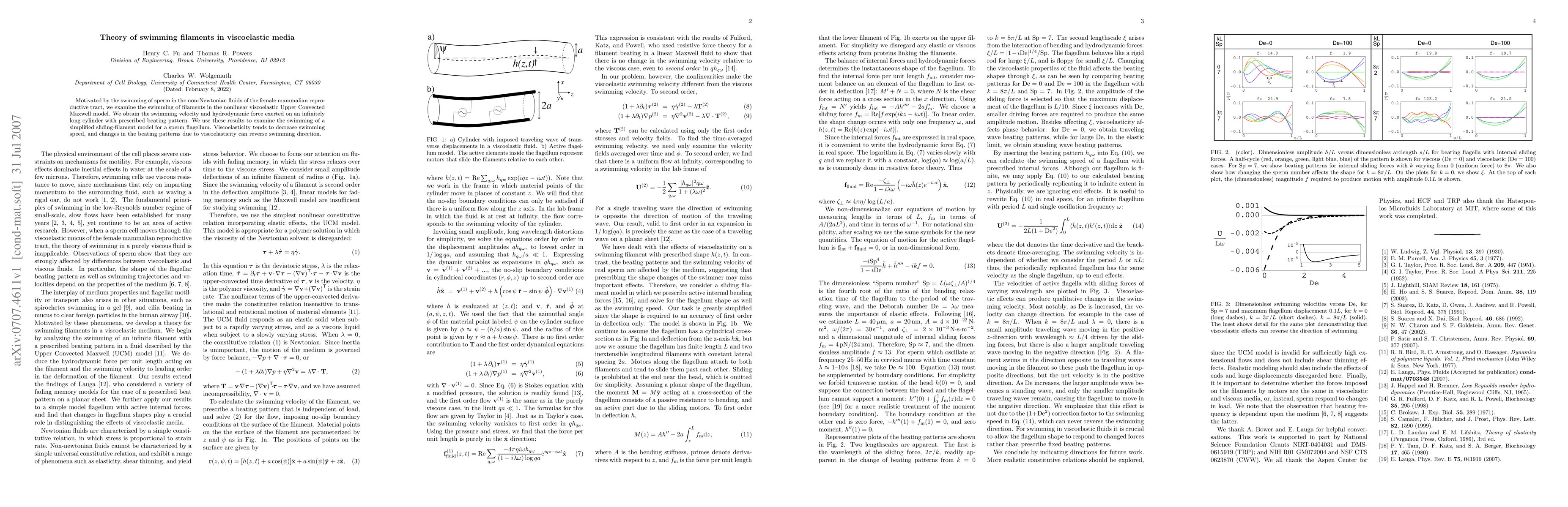 This paper investigates the swimming dynamics of filaments in viscoelastic media, specifically focusing on sperm in non-Newtonian fluids. It finds that viscoelasticity reduces swimming speed and can alter the beating pattern, potentially reversing the swimming direction.